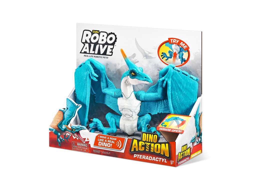 ROBO ALIVE dino Pterodactyl je nejdivočejší predátor! Tento dino ožívá s realistickým designem, zvířecím řevem a realistickými pohyby. zahrnuje *1 x T-Rex, baterie je součástí balení 3xAG13