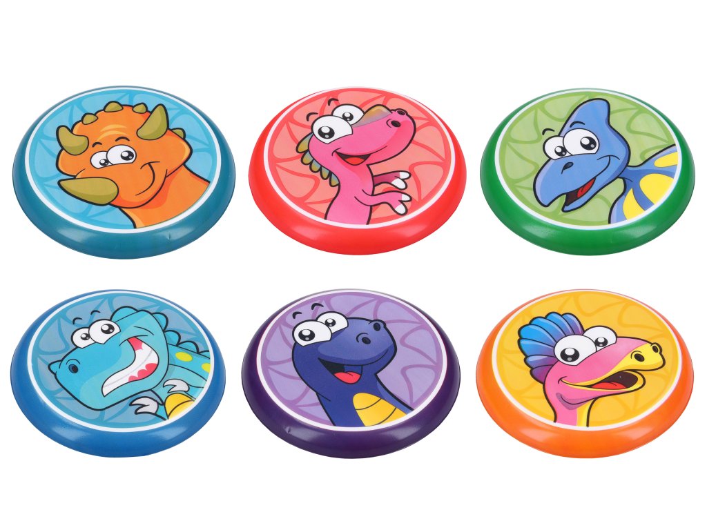 Disk házecí dino. Průměr 16 cm. Disky jsou měkké, z pěny. 12 ks display box. 6 variant - červená, fialová, oranžová, zelená, tmavě modrá, světle modrá.