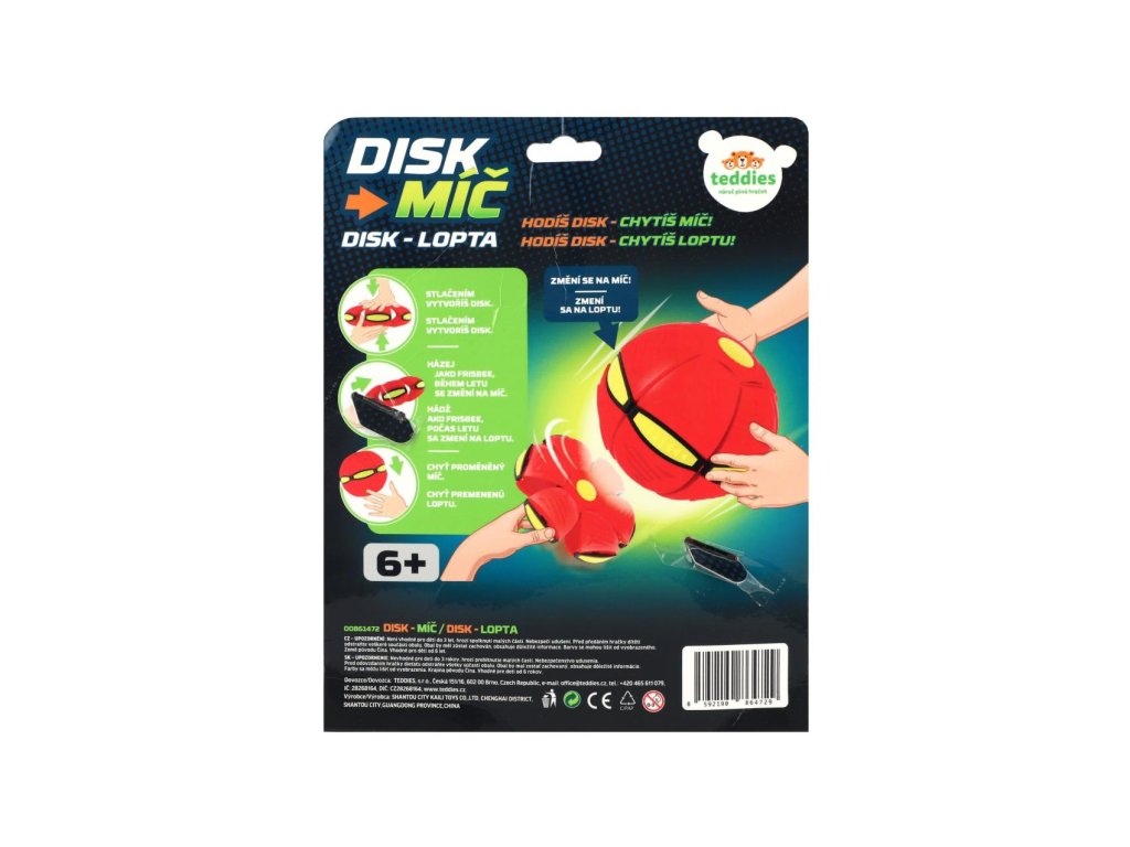 DiskMíč je zábavná venkovní i vnitřní hračka, která se při letu promění z disku na míč – a překvapí každého! Hoď ho jako disk a sleduj, jak se ve vzduchu sám změní v míč. Ideální na hřiště, do parku nebo na zahradu. Skvělý pro rozvoj motoriky, postřehu a týmové spolupráce. DiskMíč je výbornou alternativou klasických míčových her a zaručeně pobaví malé i velké.