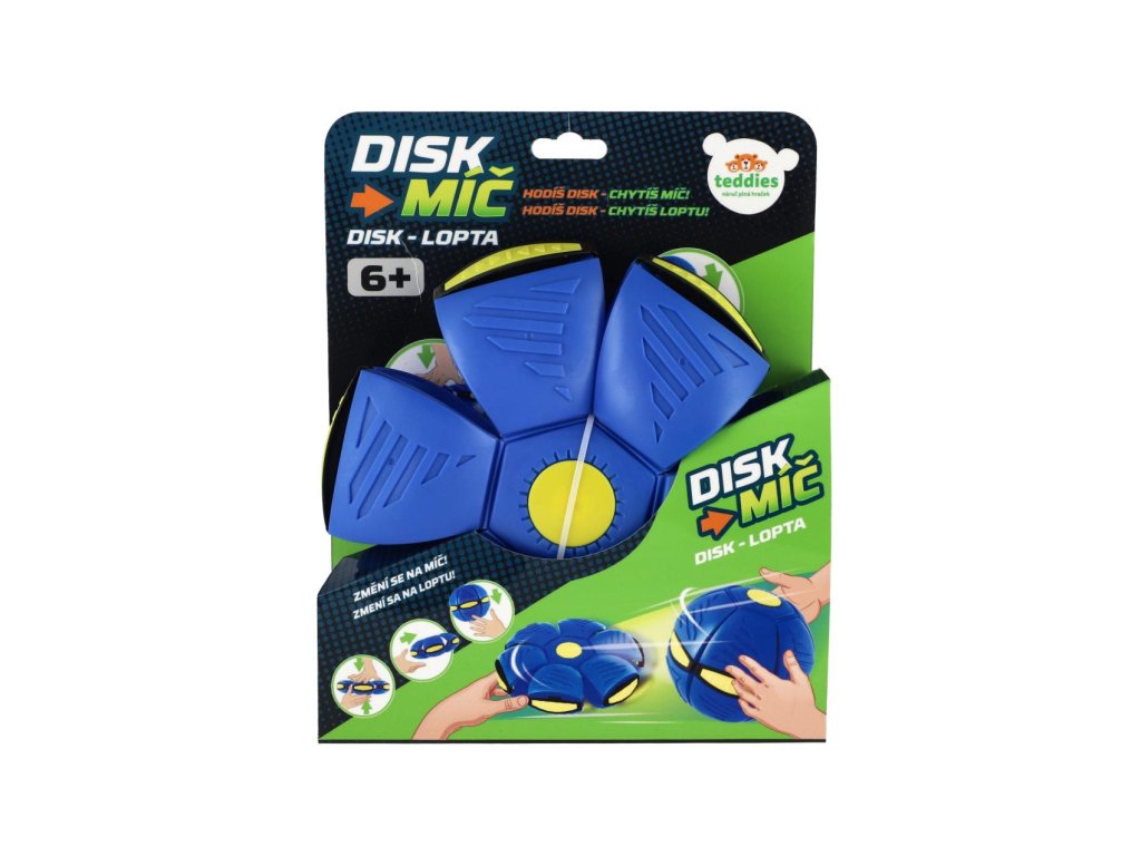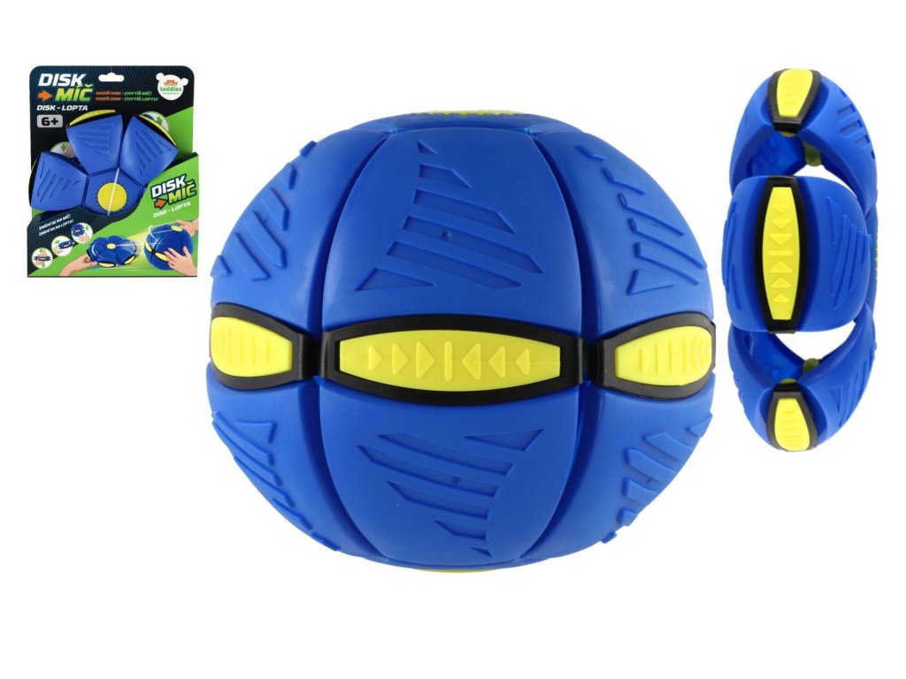 DiskMíč - Hoď disk, chyť míč! plast 22cm modrý na kartě 21,5x27x7cm