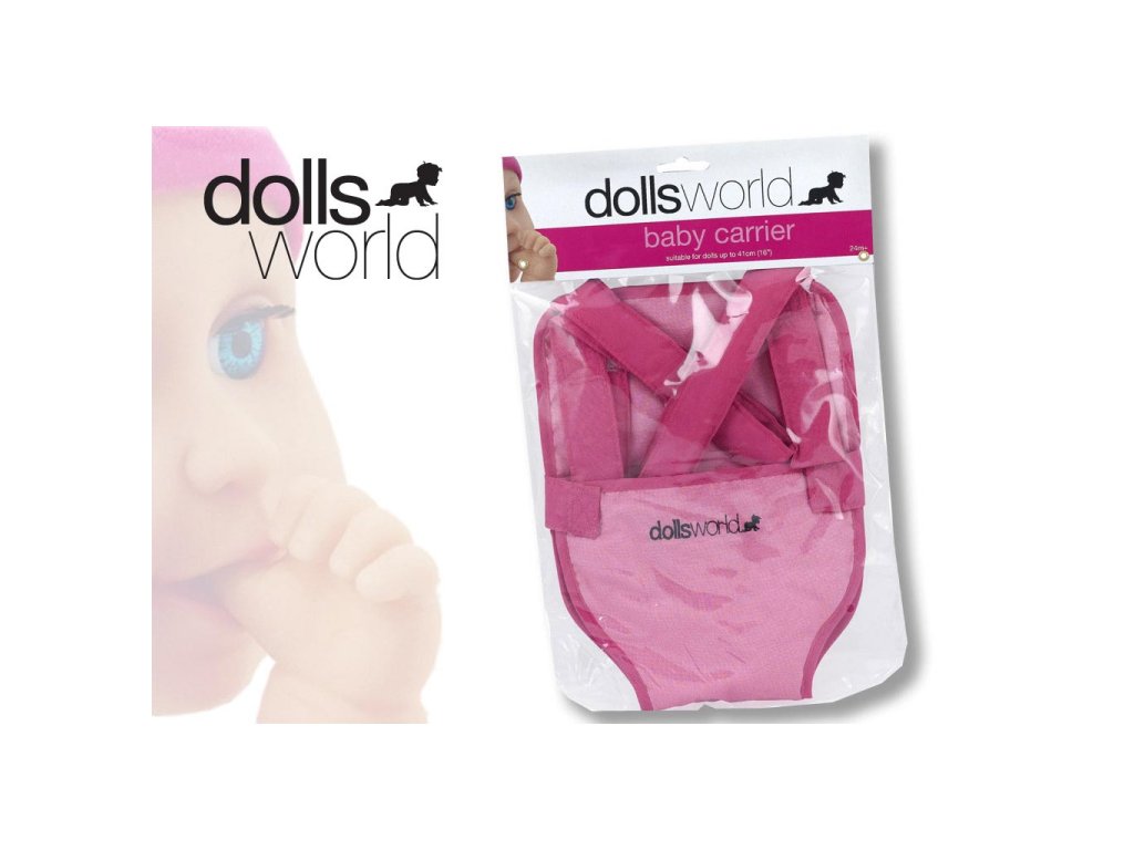 Nosič, klokanka - Dolls Worls Nosič pro panenky do velikost 41cm. Nosič na panenky v růžové barvě. Vyrobený z textilu. Na suchý zip. Podívejte se i na další zboží od značky Dolls World nebo kategorie Panenky+příslušenství. Velikost balení: 35x23cm Věk 3+