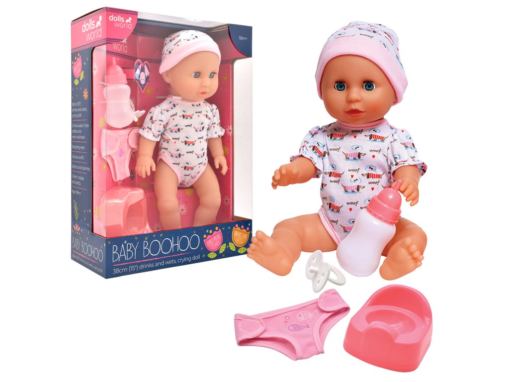 Dolls World - Miminko Baby Boohoo 38 cm pije, čůrá a pláče + příslušenství
