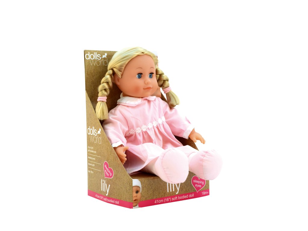 Panenka Lily značky Dolls World Mrkací panenka Lily s měkkým tělem značky Dolls World , která udělá radost každé holčičce. Vyberte si ze dvou možných variant, fialové šatičky a hnědé vlásky nebo růžové šatičky a blond vlásky. Podívejte se také na další vý