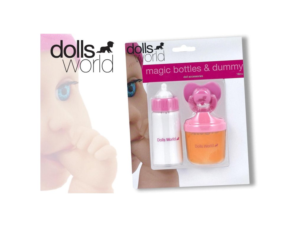 Dolls World - Sada - láhev mléka, láhev šťávy a dudlík