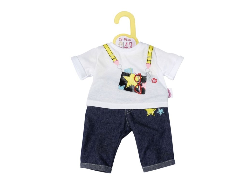 Džíny se hodí pro jakoukoli příležitost. Díky univerzálnímu střihu si oblečení Dolly Moda můžou půjčovat různé panenky velikosti 39-46 cm. Skvěle padne panenkám BABY born, Baby Annabell i jiným.