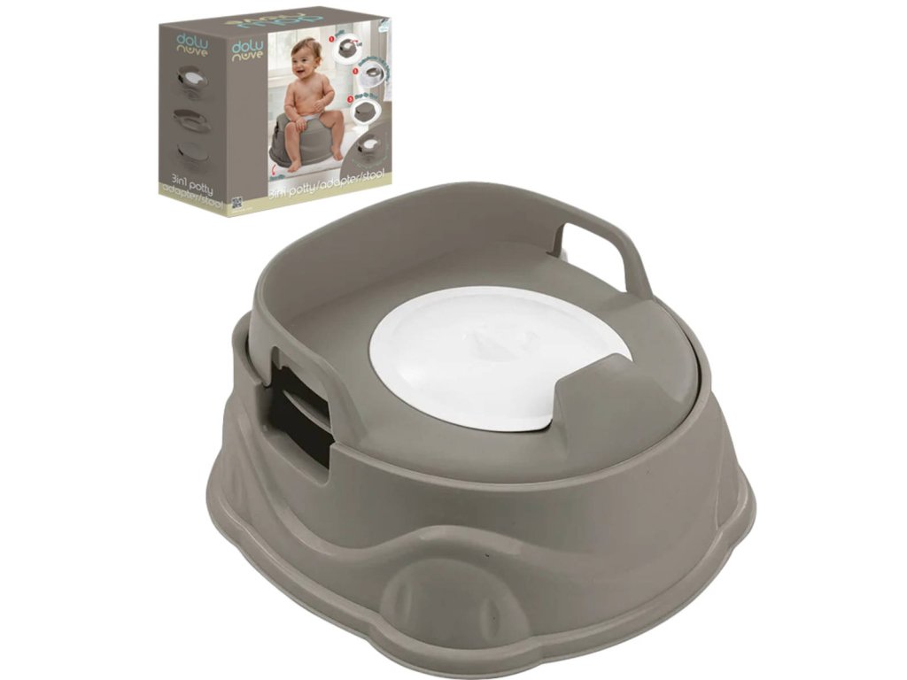 DOLU Nočník / sedátko na WC / baby dětská stolička 3v1, v šedé barvě, toaleta pro nejmenší děti. Velikost 37 x 20 x 34,5cm. Protiskluzová úprava.