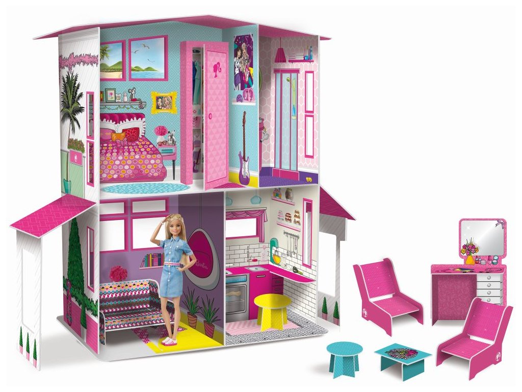 Dvoupodlažní vila snů s velkou zahradou, nábytkem, verandou a spoustou prostoru. To je fantastický dům Barbie Dream, skutečná vila, kterou můžete stavět a hrát si spolu s Barbie a jejími přáteli. Rozměr sestavené vily je 73 x 67 x 22 cm. Vhodné od 4 let.