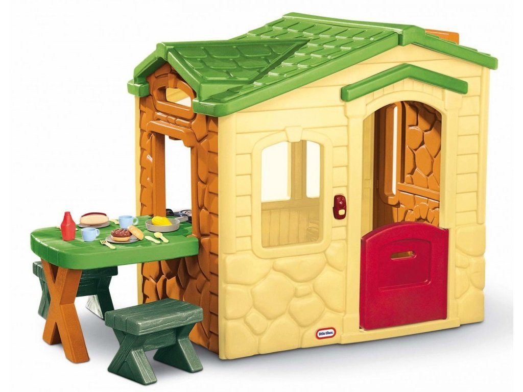 Tento nádherný domeček nabízí nejen mnoho podnětů ke hře uvnitř domečku (sporák, krb...) ale i rozšířenou plochu na hraní – venkovní piknikový stoleček se stoličkami. Domeček povzbuzuje děti, aby si rády šly hrát ven na čerstvý vzduch, při hraní plně využily svou nekonečnou představivost a strávily tak hodiny a hodiny zábavnou hrou.