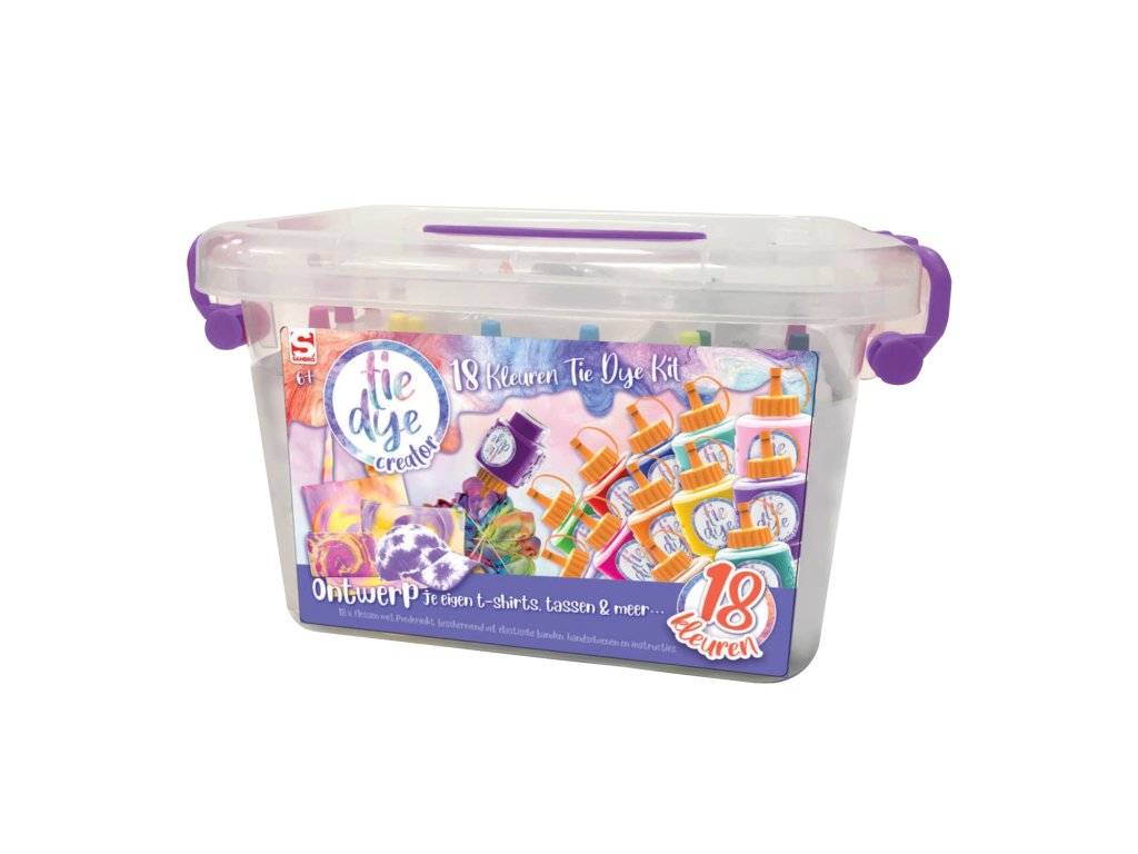 18 lahviček s různými barvami na batikování. Doplněk k položce M5200058.