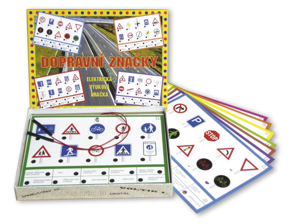 Hra pro děti od 6 let, s jejíž pomocí se naučí hravou formou 80 dopravních značek. Hra obsahuje 8 výměnných listů s vyobrazeními a názvy 80 nejběžnějších dopravních značek. Úkolem je přiřadit ke každé značce správný název. Vložit baterie 2xAA.