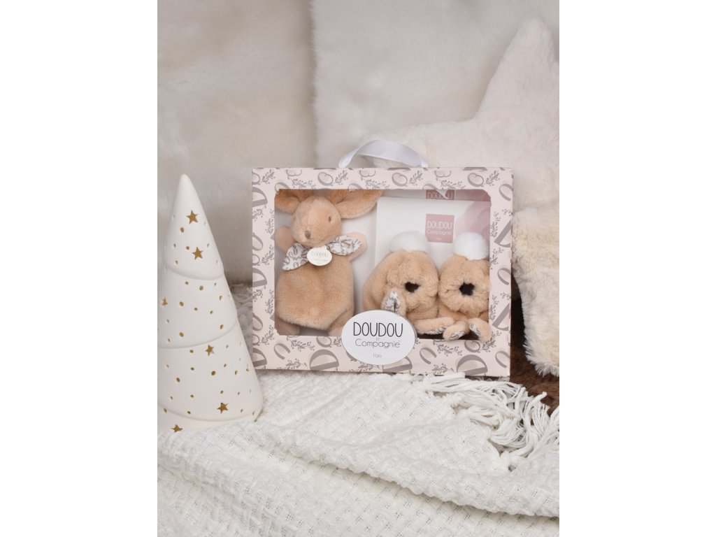 Doudou Dárková sada béžová Plyšový zajíček a botičky