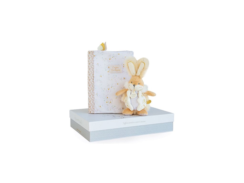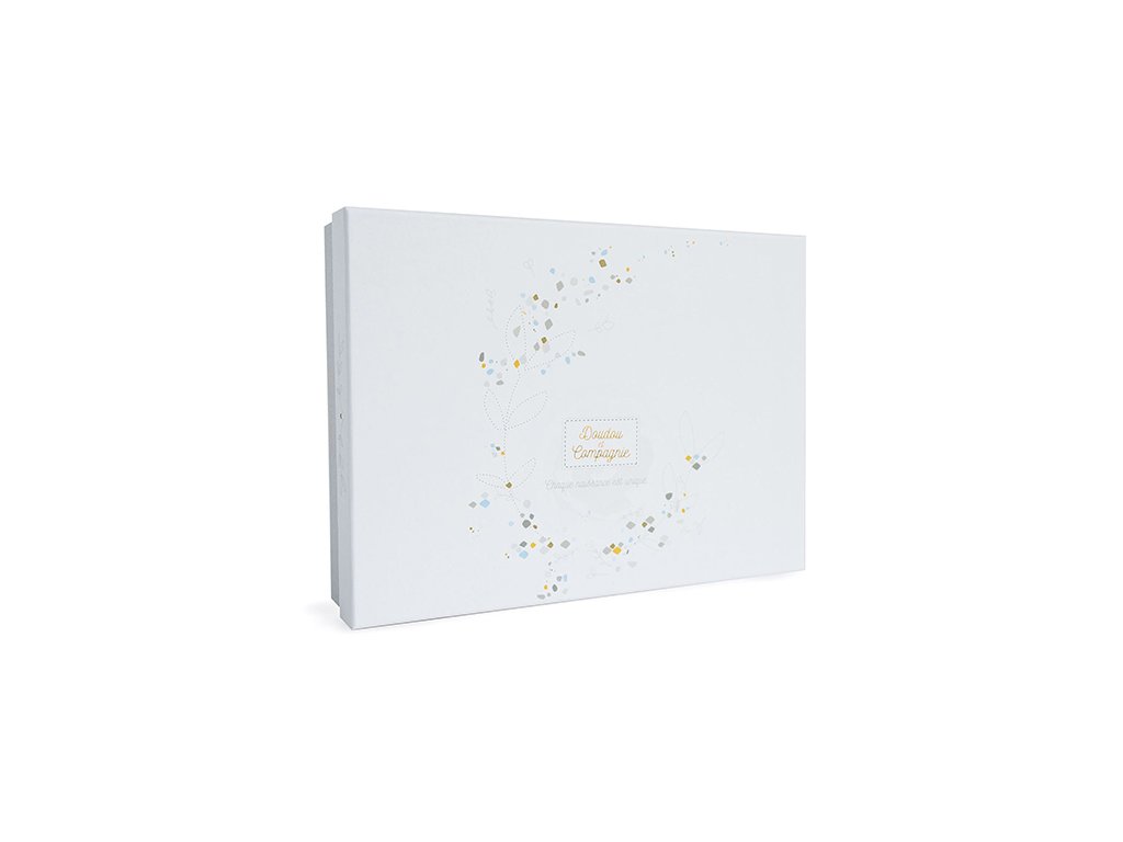 Doudou Dárková sada - bílý plyšový králíček a pouzdro na plenky