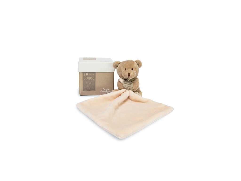 Ikonický medvídek Doudou s muchláčkem v krásné dárkové krabičce. Medvídek může doprovázet mrňata od narození. Je v hnědé barvě, extrémně měkký a rád se stane velkým kamarádem Vašeho miminka. V tlapce drží malou dečku, která slouží jako muchláček, který miminko snadno uchopí svými malými ručičkami. Ideální také jako dárek k narození miminka. Údržba: Perte v lázni na 30°. Přirozené nebo nízkoteplotní sušení. Hlavní vlastnosti: měkký plyš, prémiový materiálv souladu s evropskými normami CEvhodné od narozeníideální dárek k narození