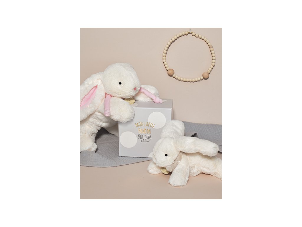 Tato plyšová hračka králíčka z kolekce "Candy Rabbit" bude nezbytným společníkem Vašeho dítěte. Jeho hedvábná textura z něj udělá plyšovou hračku, se kterou se budou chtít děti mazlit celý den. Rozkošný králíček v krémové barvě s růžovými oušky, je posazený do nádherné dárkové krabičky s grafikou evokující modernost i luxus. Tato plyšová hračka je také ideální jako dárek. Údržba: Perte v lázni na 30°. Přirozené nebo nízkoteplotní sušení. Hlavní vlastnosti: měkký plyš, prémiový materiálv souladu s evropskými normami CEkrásná dárková krabičkavhodné od narození