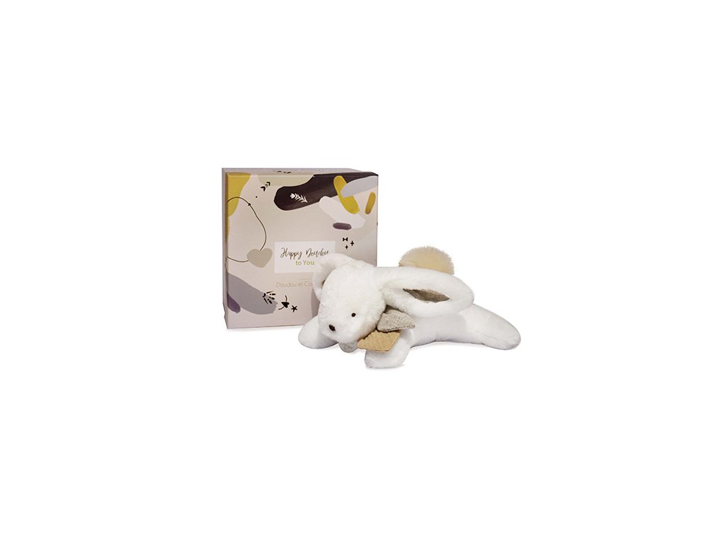 Doudou Dárková sada - Plyšový králíček s béžovou bambulkou 25 cm