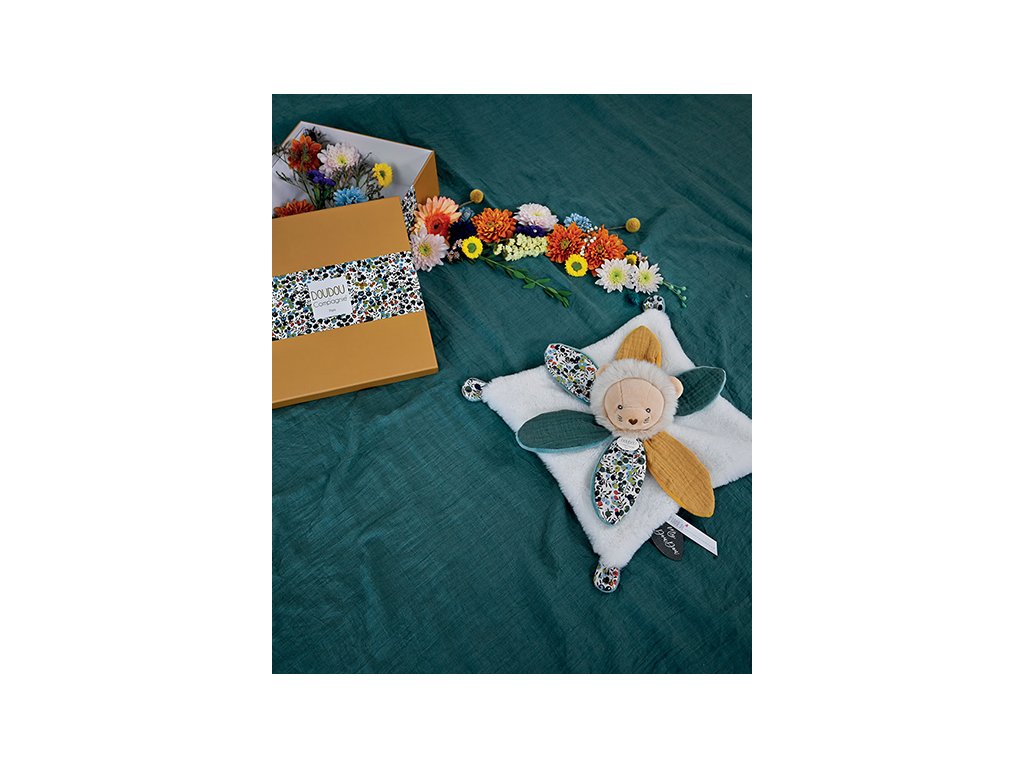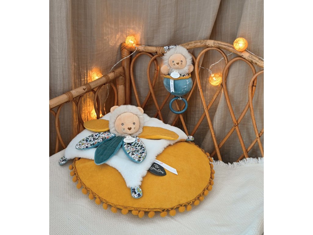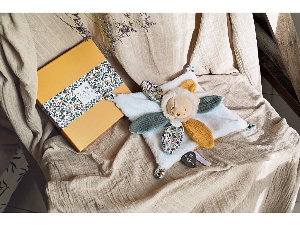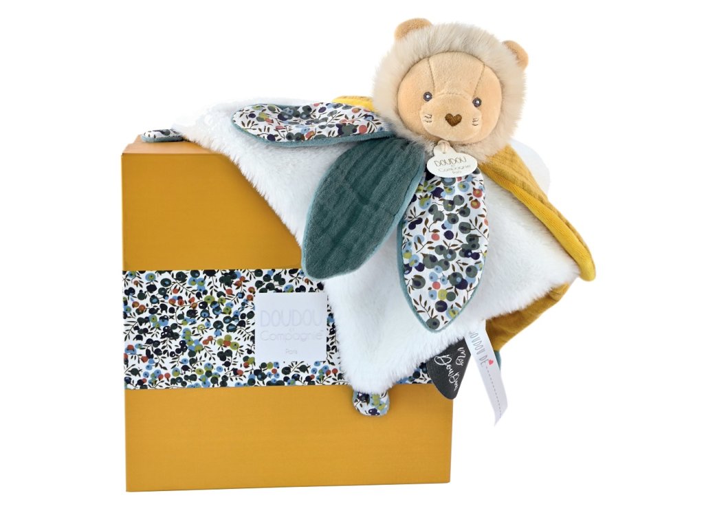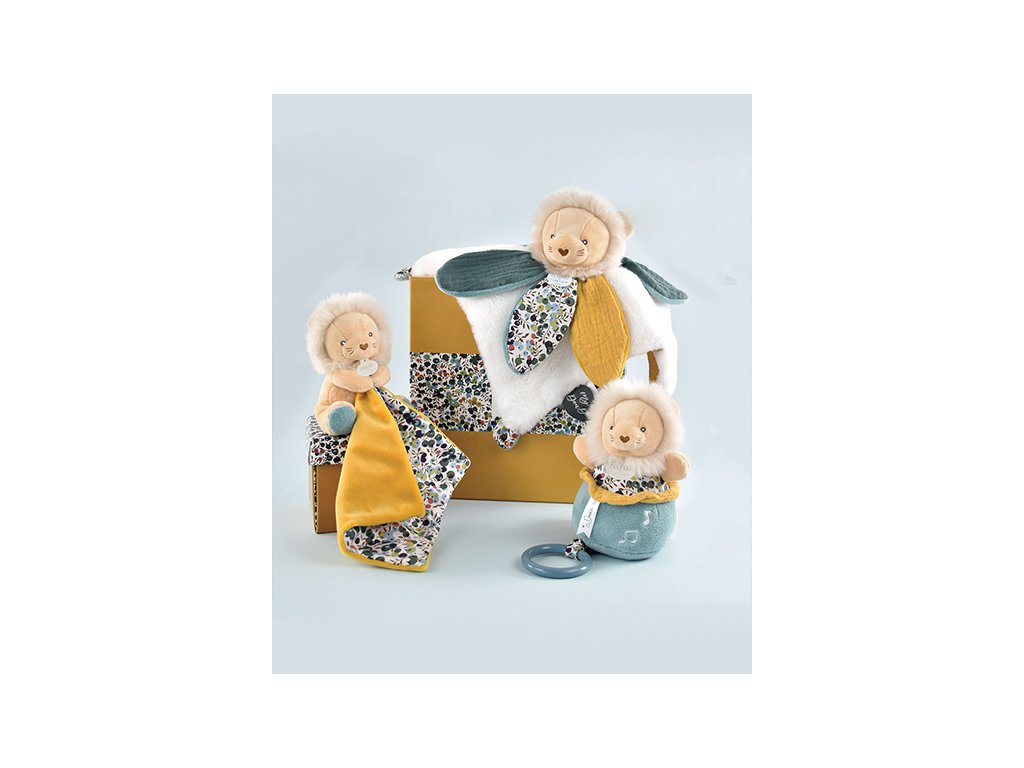 Plyšový lvíček muchláček doprovází miminko od narození, aby mu přinesl hebkost, pohodlí a objetí. Ultra jemná a uklidňující je strana se svěžím bavlněným potiskem vytvořeným našimi stylisty. Lvíček rozvíjí smysly a zvědavost. Je to velmi pěkný dárek k Vánocům nebo k oslavě narození miminka. Je extrémně měkký a příjemný na dotek. Rozkošný lvíček s dečkou je posazen do nádherné dárkové krabičky s grafikou evokující modernost i luxus. Údržba: Perte v lázni na 30°. Přirozené nebo nízkoteplotní sušení. Hlavní vlastnosti: měkký plyš, prémiový materiálv souladu s evropskými normami CEkrásná dárková krabičkavhodné od narození