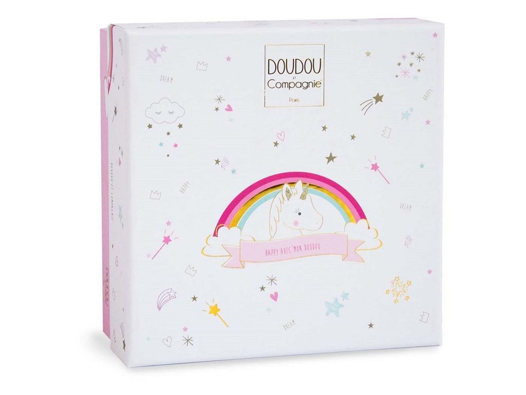 Doudou Dárková sada - plyšový muchláček jednorožec růžový 20 cm