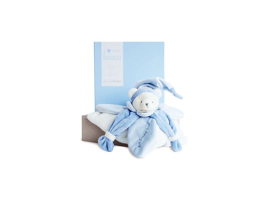 Doudou Dárková sada - plyšový muchláček modrý medvídek 24 cm