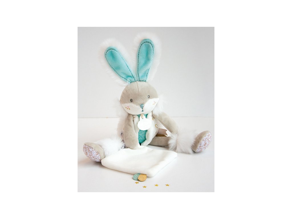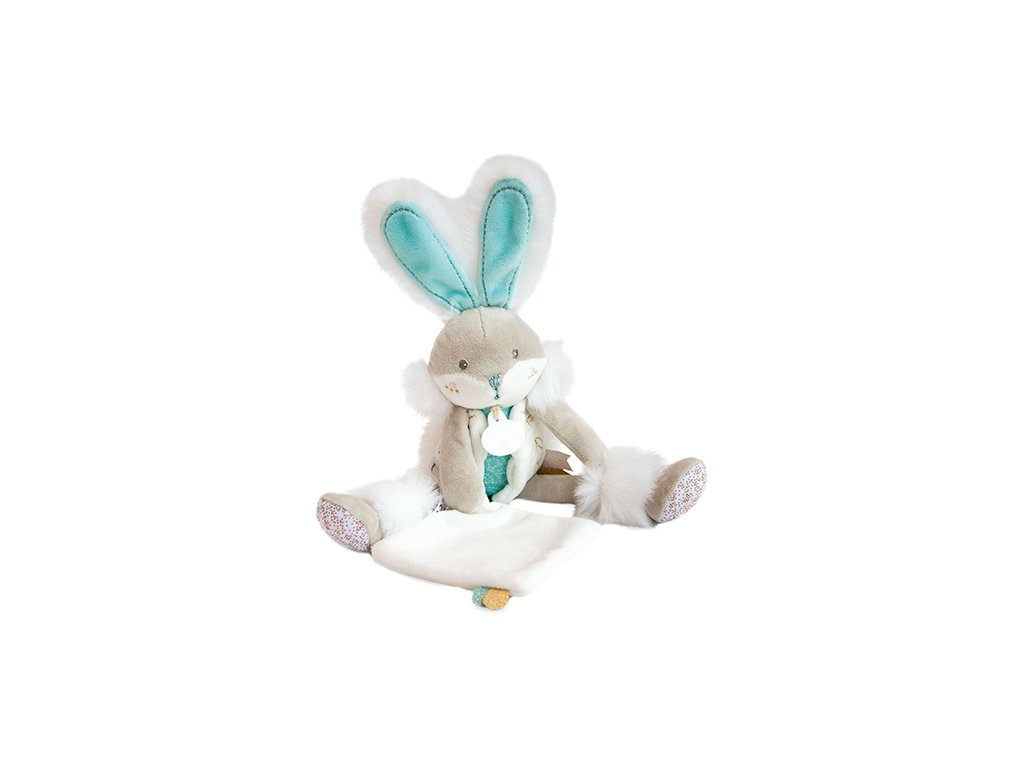 Doudou Dárková sada - plyšový zajíček s dečkou 31 cm tyrkysový