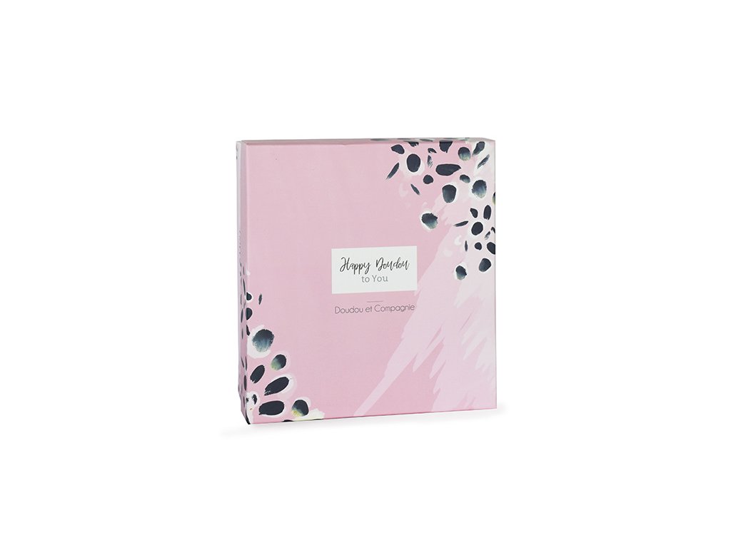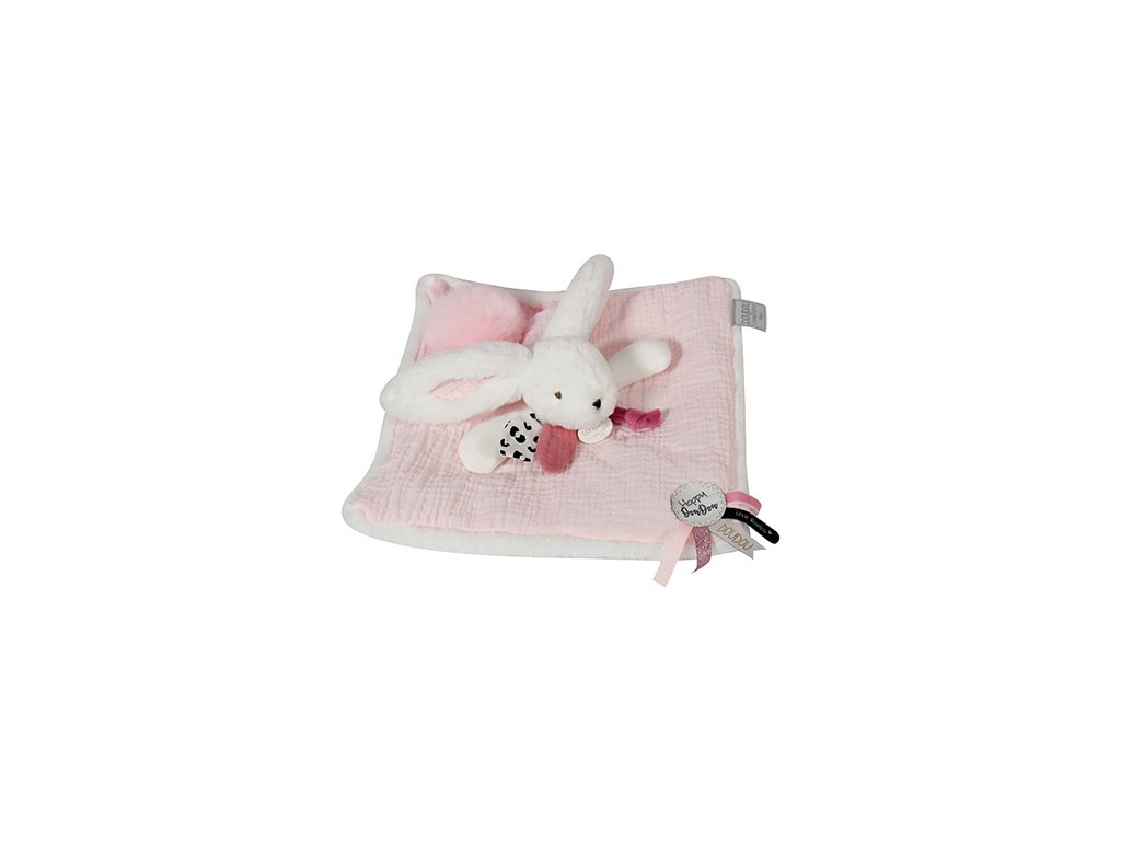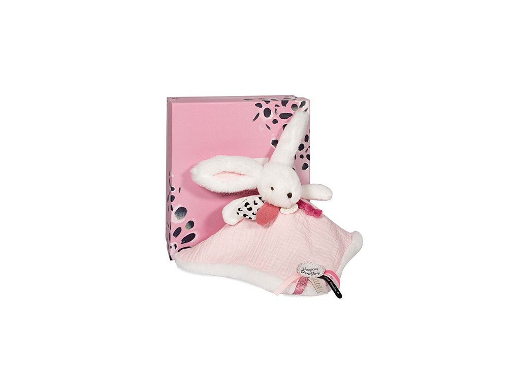 Doudou Dárková sada růžová - králíček s čtvercovou dečkou 25 cm
