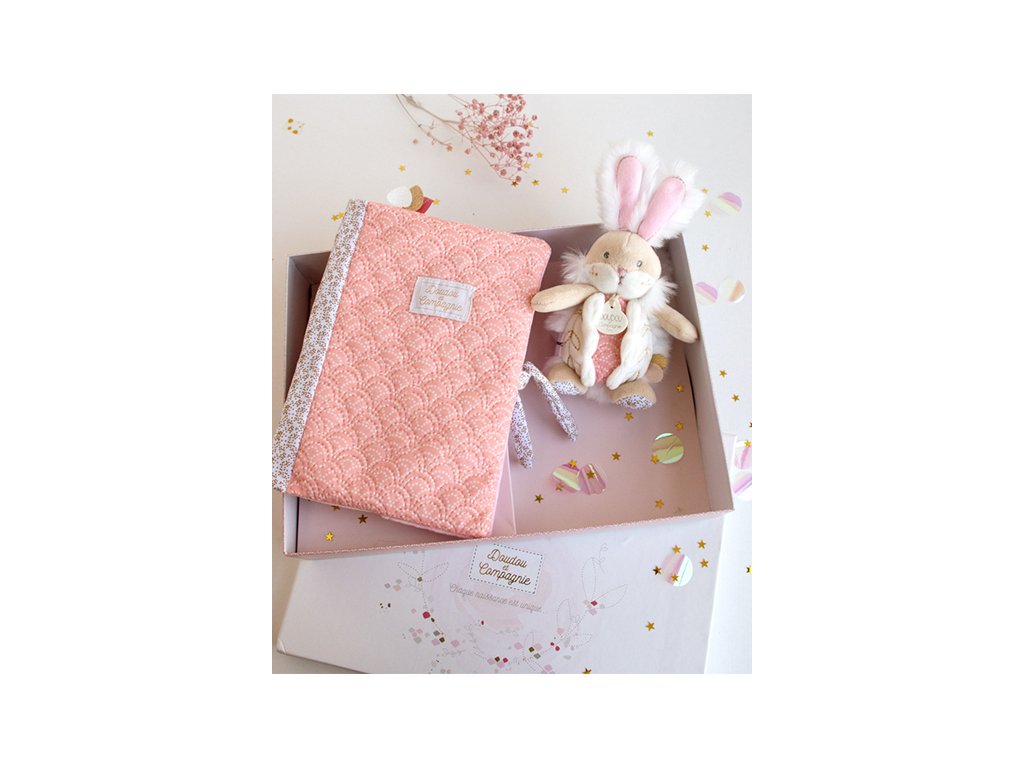 Doudou Dárková sada - růžový plyšový králíček a pouzdro na plenky