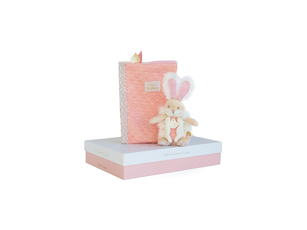 Doudou Dárková sada - růžový plyšový králíček a pouzdro na plenky