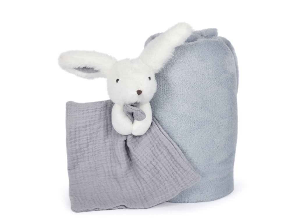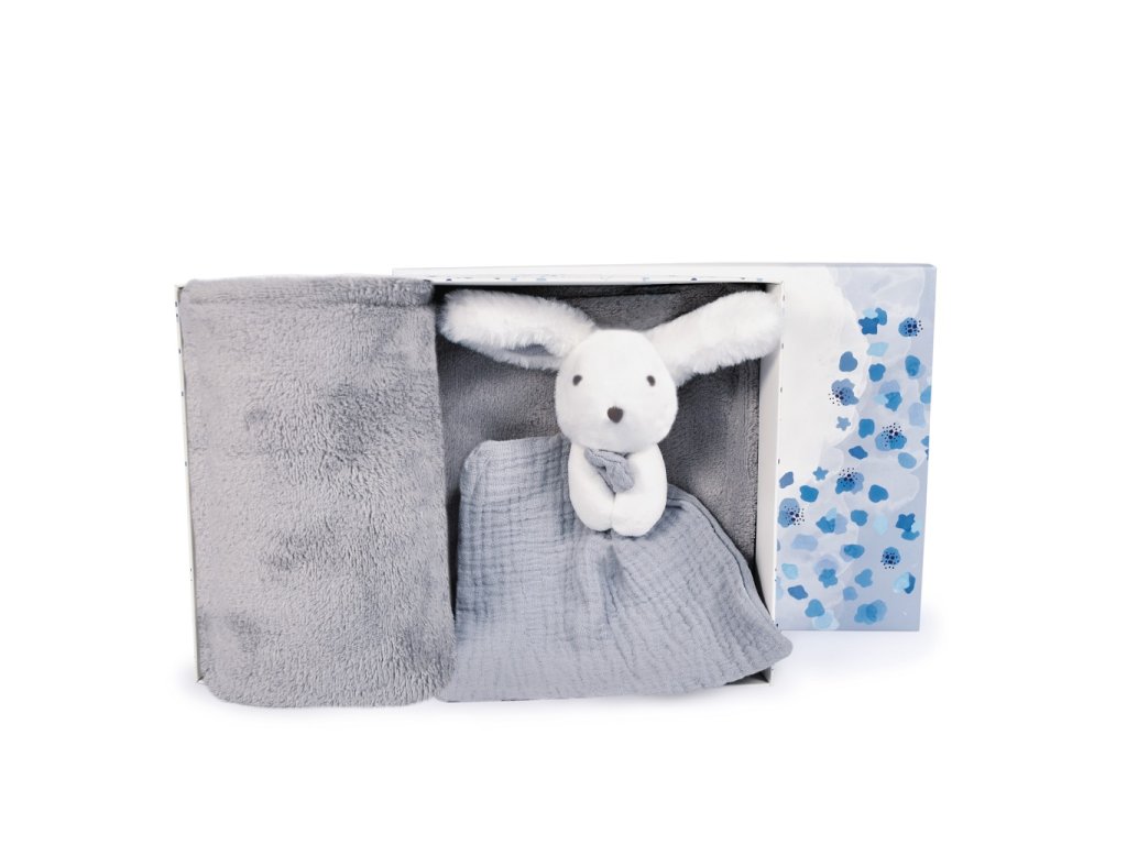 Doudou Dárková sada šťastný králíček pléd a modro-šedý muchláček