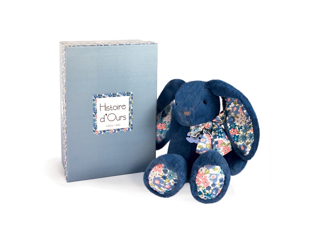 Nový měkoučký, plyšový kamarád v rodině potěší každé dítě. Tento králíček v modré barvě bude s jemnými doteky něžně dohlížet na všechny maličké. Je dodáván v krásné modré krabičce v kombinaci s květinovým potiskem. Může doprovázet miminko od narození, aby mu přinesl hebkost, pohodlí a objetí. Rozvíjí smysly a zvědavost. Je to velmi pěkný dárek k Vánocům nebo k oslavě narození miminka. Údržba: Perte v lázni na 30°. Přirozené nebo nízkoteplotní sušení. Hlavní vlastnosti: měkký plyš, prémiový materiálv souladu s evropskými normami CEkrásná dárková krabičkavhodné od narození