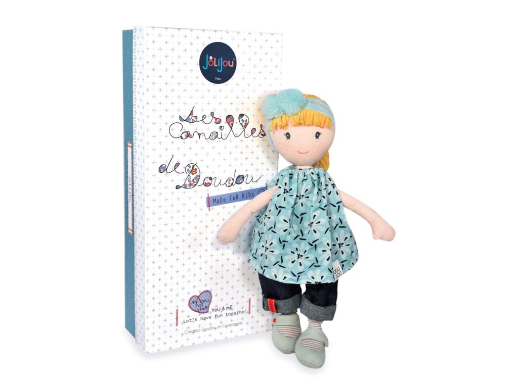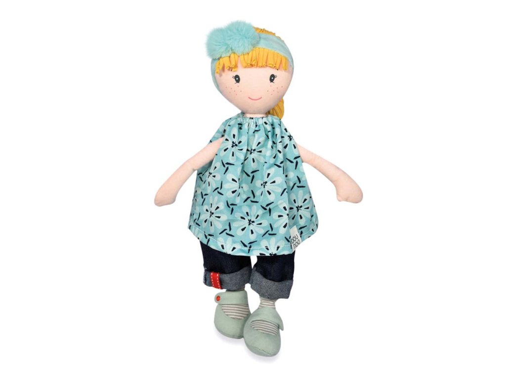 Látková panenka Evy. Evy je temperamentní a společenská panenka, která má ráda svůj ležérní styl. Džíny, halenka s moderními vzory, balerínky a čelenka s bambulkami vše v odstínech modré nebo aqua k ní sedí naprosto dokonale. Eviny doplňky je navíc možné jí svlékat a oblékat. Panenka je dodávána v originální dárkové krabičce. Údržba: Perte v lázni na 30°. Doporučení: Přirozené nebo nízkoteplotní sušení. Hračka splňuje evropské bezpečností CE normy. Hlavní vlastnosti: vhodné od narozeníbavlněný obličej, vyšívané oči i ústa a pihypanenka s doplňky, které je možné svlékat a oblékatv dárkové krabičce