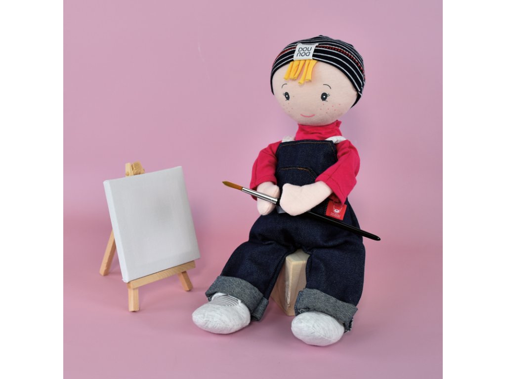 Látková panenka malíř Faustin. Faustin je malíř, který má rád svůj ležérní styl. Modrý overal, červené tričko s dlouhým rukávem a pruhovaný klobouk. Faustinovy doplňky je navíc možné mu svlékat a oblékat. Panenka je dodávána v originální dárkové krabičce. Údržba: Perte v lázni na 30°. Doporučení: Přirozené nebo nízkoteplotní sušení. Hračka splňuje evropské bezpečností CE normy. Hlavní vlastnosti: vhodné od narozeníbavlněný obličej, vyšívané oči i ústa a pihypanenka s doplňky, které je možné svlékat a oblékatv dárkové krabičce