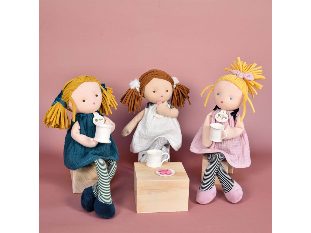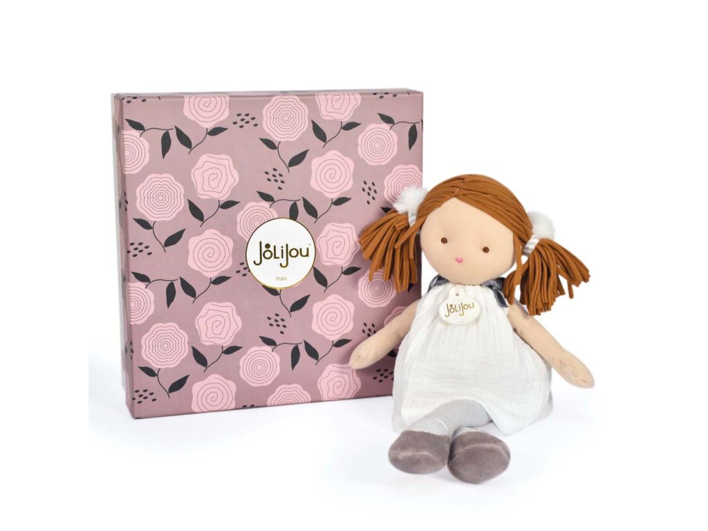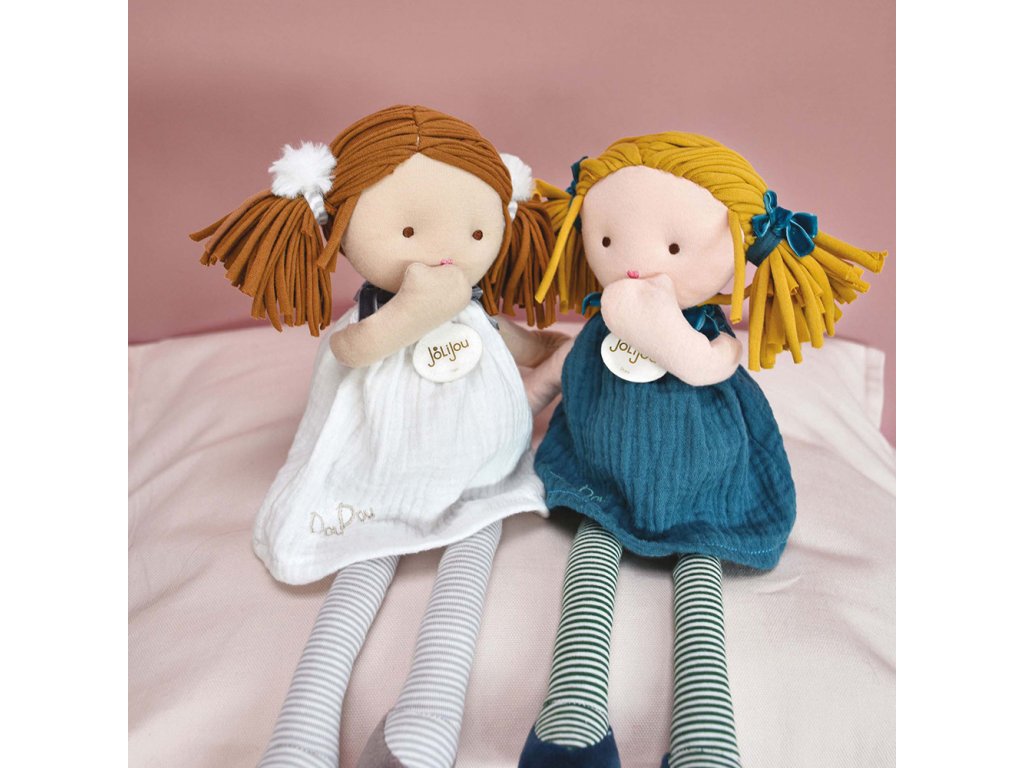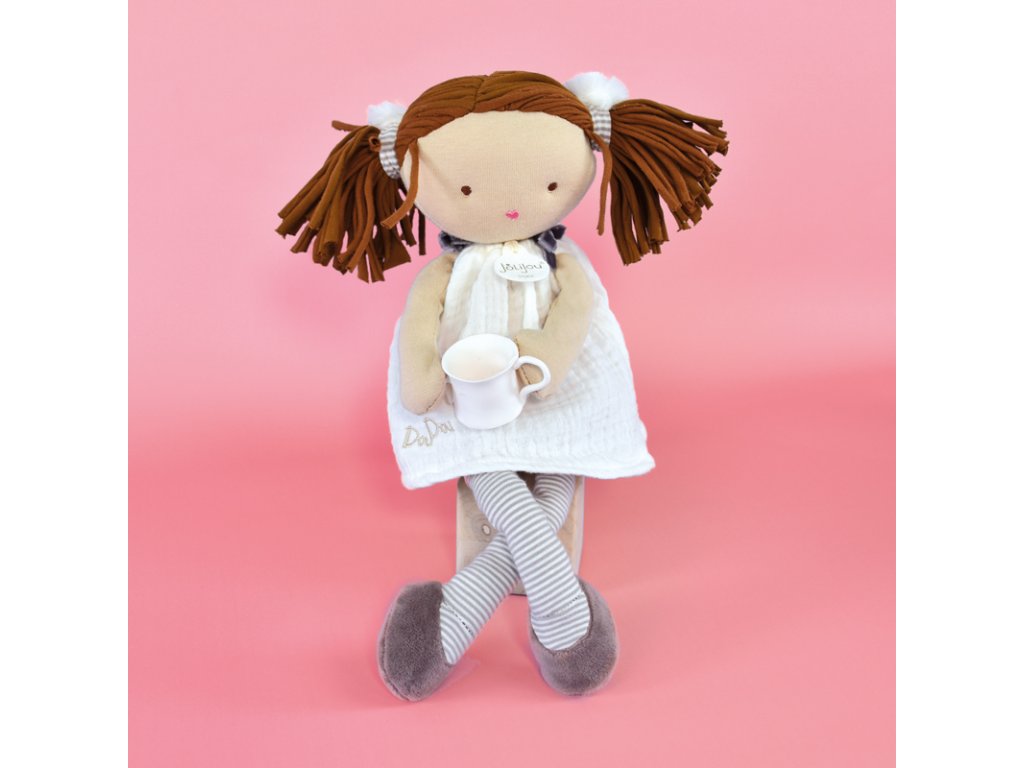 Tato roztomilá panenka má svůj ležérní styl. Panenka Nina je oblečená v pruhovaných punčoškách. Její šedé balerínky a bílé šatičky přesně podtrhují její eleganci. A aby byla ještě víc šik má navíc své "špagetové" hnědé vlasy stažené do culíčků s bambulkami. Panenka je dodávána v dárkové krabičce. Údržba: Perte v lázni na 30°. Doporučení: Přirozené nebo nízkoteplotní sušení. Hračka splňuje evropské bezpečností CE normy. Hlavní vlastnosti: vhodné od narozeníbavlněný obličej, vyšívané oči a ústa vyšitá do tvaru srdíčkapanenka s doplňkyv dárkové krabičce