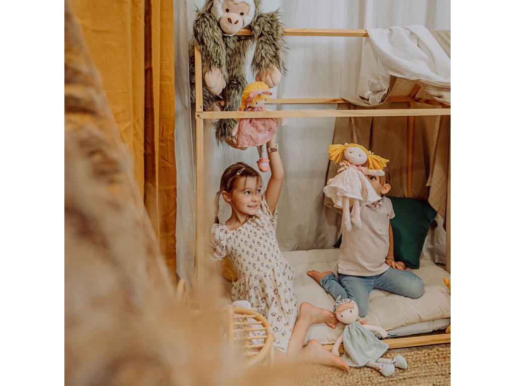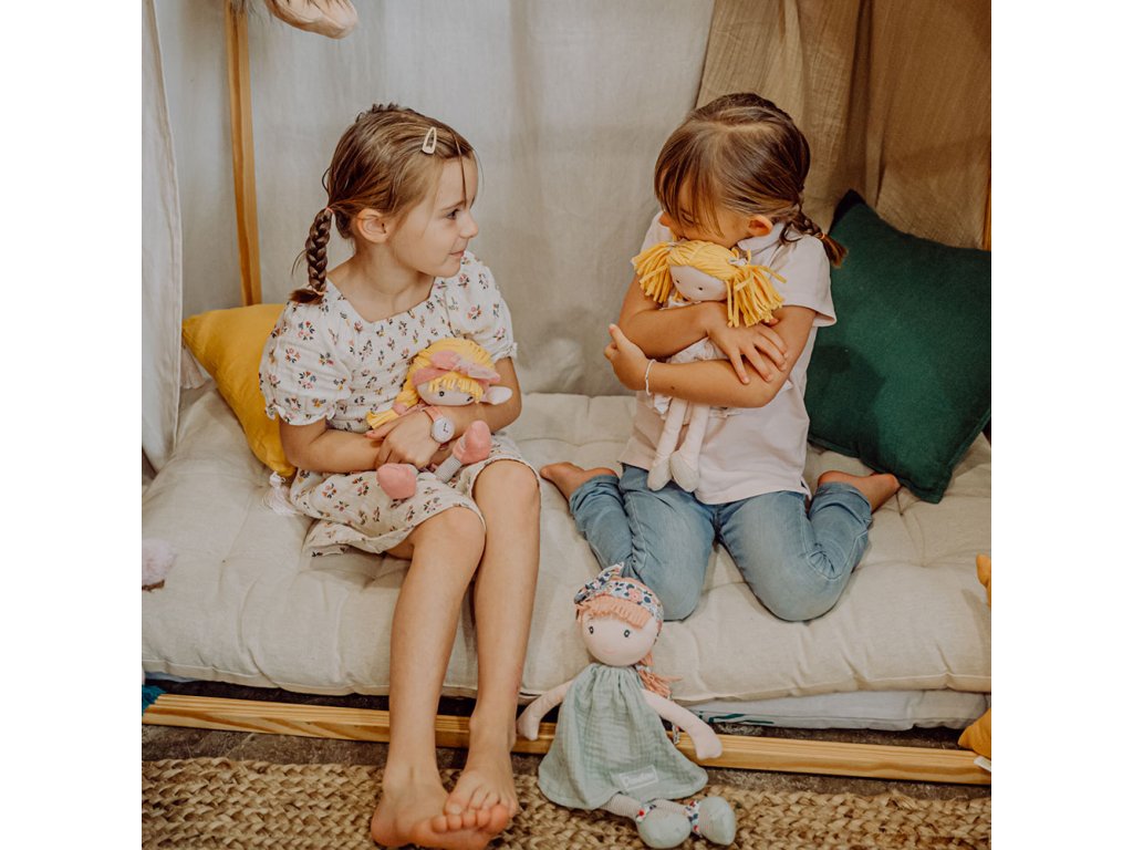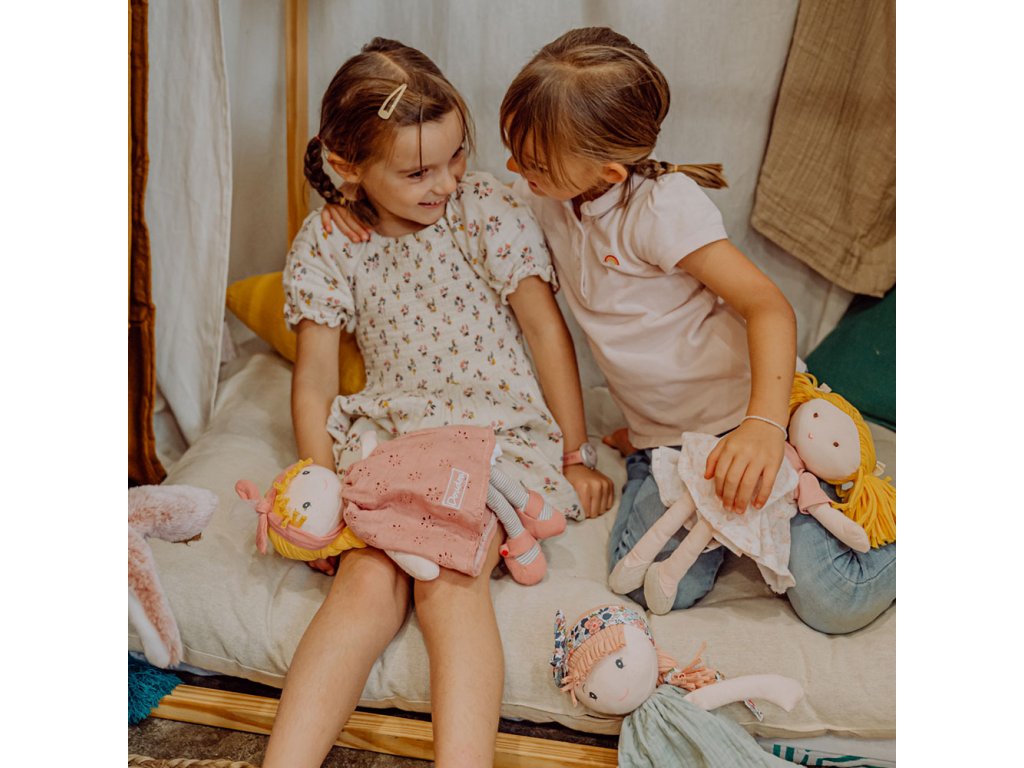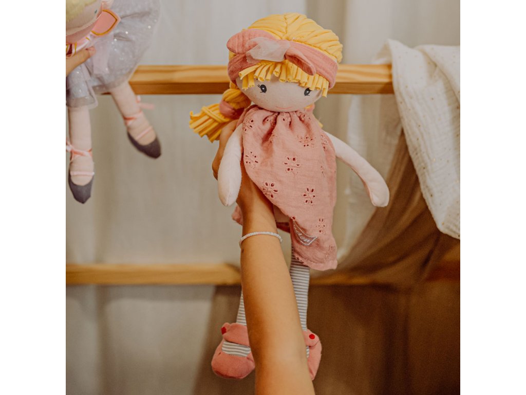 Látková panenka Suzette je často zasněná a ráda se v myšlenkách ponoří do nádherných příběhů. Ráda nosí hezké splývavé růžové šaty z bavlny poseté výšivkami květin, růžové balerínky, čelenku s velkou mašlí s nádechem tylu. Oblečení je navíc možné svlékat a zase oblékat. Panenka je dodávána v originální dárkové krabičce. Hračka splňuje evropské bezpečností CE normy. Údržba: Perte v lázni na 30° Doporučení: Přirozené nebo nízkoteplotní sušení. Hlavní vlastnosti: vhodné od narozeníbavlněný obličej, vyšívané oči i ústa a pihypanenka s doplňky, které je možné svlékat a oblékatv dárkové krabičce