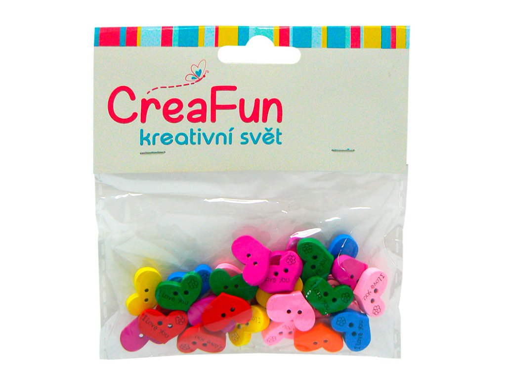 Mix barevných, dřevěných knoflíčků s nápisem I Love you! - Věk 3+