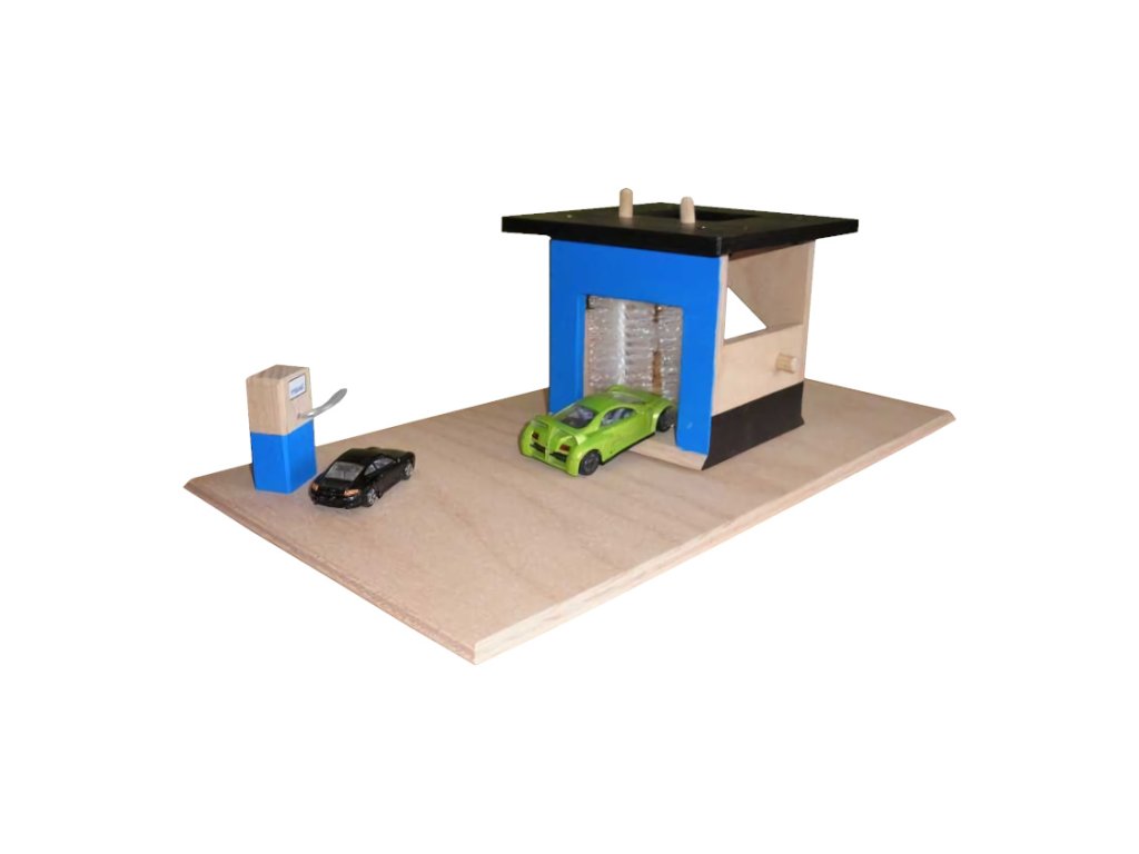 Autíčka typu "angličák" vyjedou z garáží a hned zabočí tankovat - může si vybrat, který benzín nebo naftu. Také si může dofouknout pneumatiky. Všechna stanoviště jsou funční, jen benzín neteče. Jednoduchá hračka pro kluky s fantazií. Hlavní vlastnosti: zlepšuje koordinaci v zábavném prostředípoužité barvy jsou zdravotně nezávadné