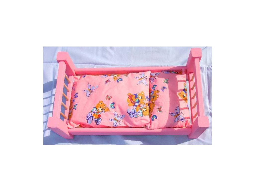 Dřevěná postel pro panenky růžová velká