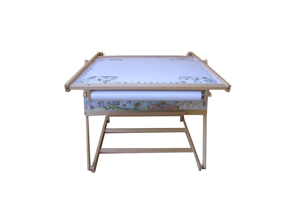 Rolička papíru připevněná ke stolečku je vhodná na malování pastelkami nebo barvami.