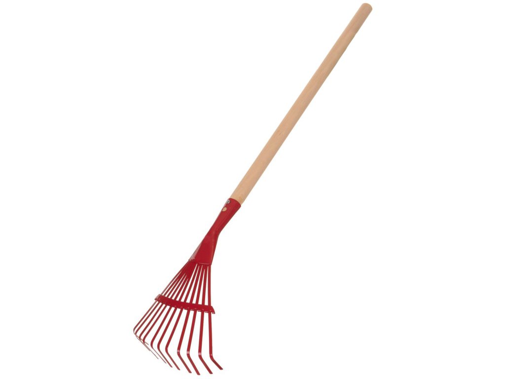 DŘEVO Dětské nářadí pracovní 80cm kovové hrábě planžetové červené