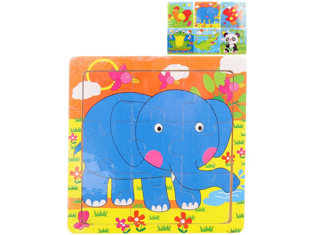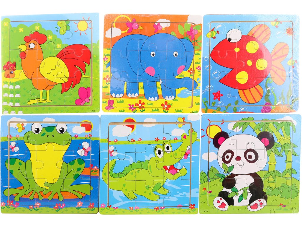 DŘEVO Puzzle zvířátka vkládací na desce 9 dílků 6 druhů
