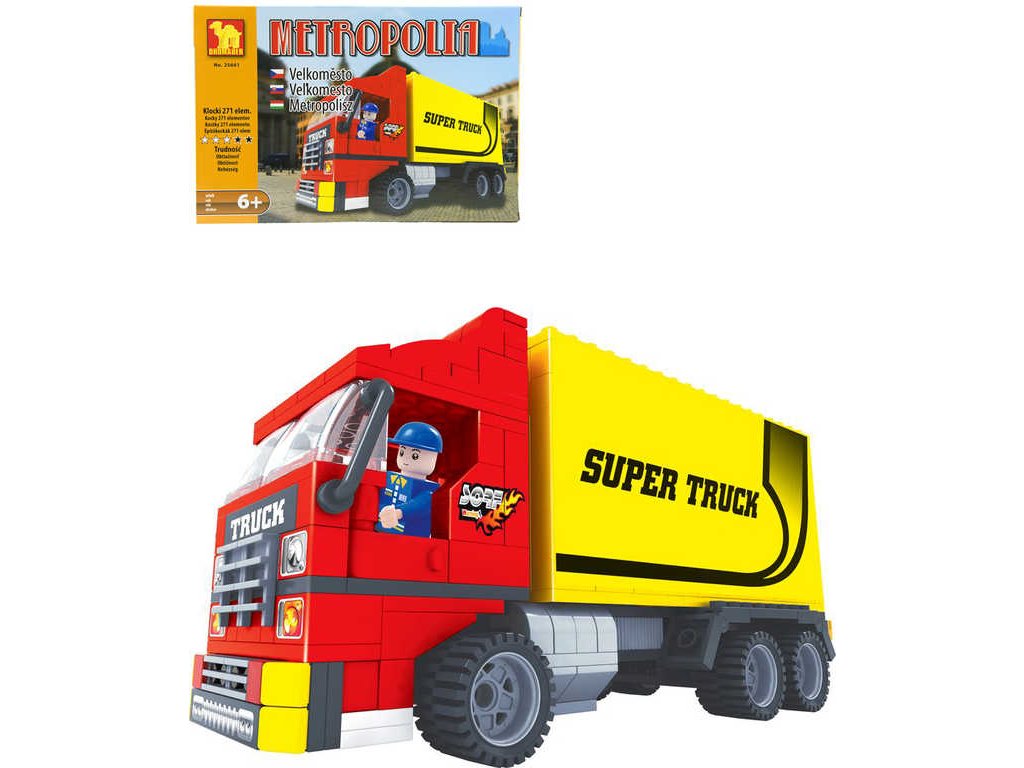 DROMADER 25601 - Velkoměsto: Nákladní auto. Plastová stavebnice pro kluky. Baleno v krabici.