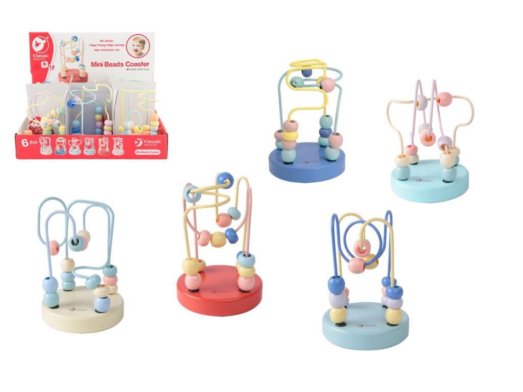 Edukační labyrint dřevo/kov 9x13cm 6 druhů 6ks v boxu 12m+