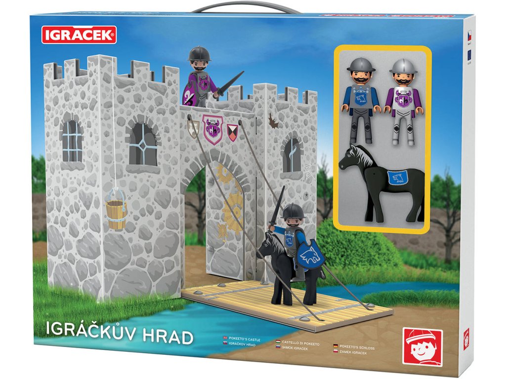 Vydejte se s Igráčkem rytířem do pohádky a braňte svůj hrad proti nepřátelům. Součástí hradu jsou dvě postavičky Igráčků Rytířů včetně zbroje a kůň. Vyrobeno z pevného kvalitního laminovaného kartonu. Snadná kompletace hradu za pomoci plastových spojek. Igráčkův hrad rozvíjí jemnou motoriku, fantazii a lze si s ní například zahrát divadlo.