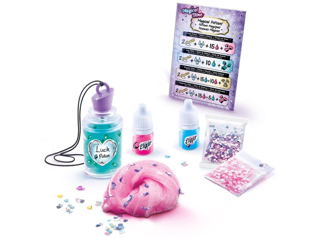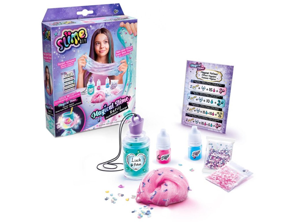 Novinka So Slime Magický elixír – náplň zabaví tvořivé ruce a pomůže vám vyrobit úžasné elixíry. Smíchejte prášek magického slizu s vodou a přidejte přísady a dekorace! Podle receptu si vyrobíte magický elixír.