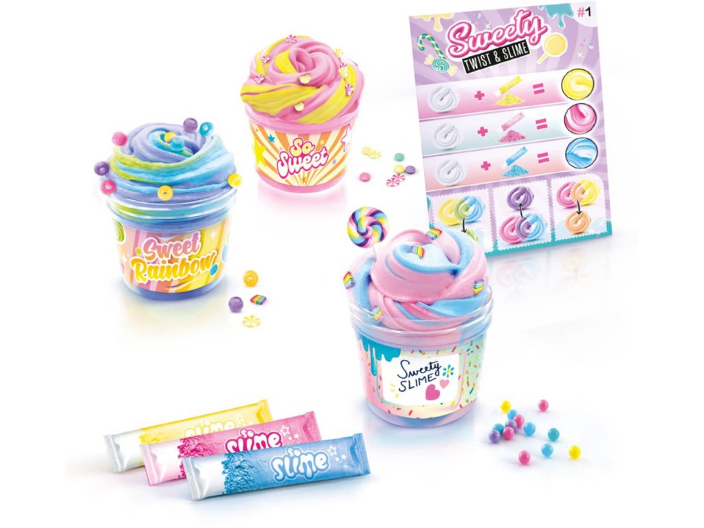 Novinka So Slime – Marble Sweety Twist & Slime sada zabaví všechny tvořivé ručičky. Vytvořte si jedinečné barevné slizy s doplňky pomocí této sady. Míchejte barvy, přidejte ozdoby! Sliz natáhněte a užijte si zábavu.