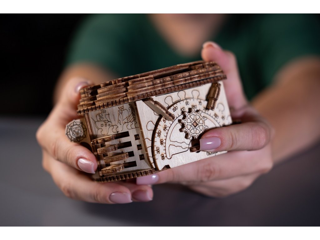 "Blackbeard's Compass" je vzrušující hra, která přináší záhadné dobrodružství přímo k Vám do rukou. Tato hra vytváří atmosféru tajemství a dobrodružství inspirovanou legendárním pirátem Černovousem a jeho ztraceným kompasem. hra obsahuje různé hádanky, z nichž každá odemyká další a nakonec vede ke skryté přihrádce uvnitř krabičky. Takže si určete kurz, nastavte plachty a vydejte se na legendární výpravu. Čeká Vás vzrušující cesta. Odhalíte poklad, nebo se stanete dalším příběhem, o kterém se šeptá v pověstech o pirátech? Hra vás zavede do spletitého světa hádanek a šifer. Vašim úkolem je rozluštit tajemství hry a najít cestu k pokladu. Ocitnete se v situacích plných nástrah, kde je každý krok důležitý a každá volba má vliv na postup. Tato hra je nejen o logice a promýšlení kroků, ale také o prožívání vzrušujícího dobrodružství. Při hře Blackbeard's Compass se ponoříte do temného světa, plného skrytých tajemství a pirátských záhad. Překonávejte překážky a objevujte tajemství, která vás provedou každým krokem na cestě k pokladu. Tato hra poskytuje nejen hodiny zábavy, ale také podněcuje týmovou spolupráci, logické myšlení a řešení problémů. Blackbeard's Compass je skvělým způsobem, jak si vychutnat dobrodružství přímo v pohodlí svého domova, které vám poskytne unikátní a nezapomenutelný zážitek. Hlavní vlastnosti: mapa pokladu umocňující tematický zážitekunikátní a nezapomenutelný zážitekhra podněcuje týmovou spolupráci a logické myšlení13 hádanekrozměry vnitřní přihrádky 4x4x2,6 cmvysoká obtížnost