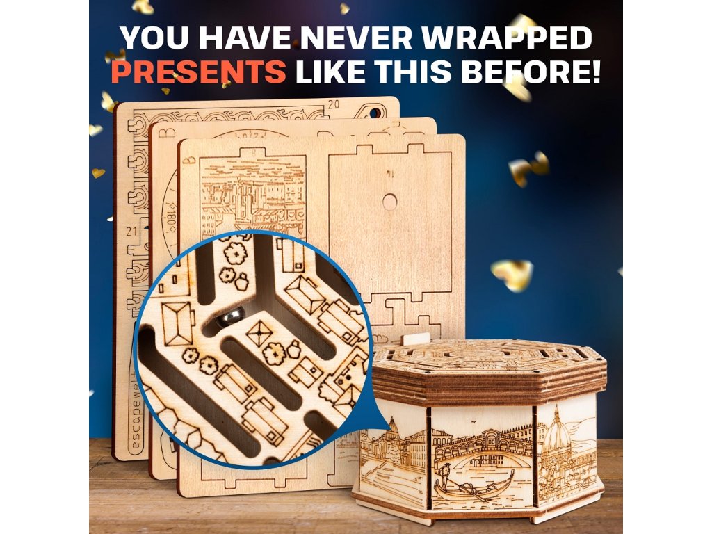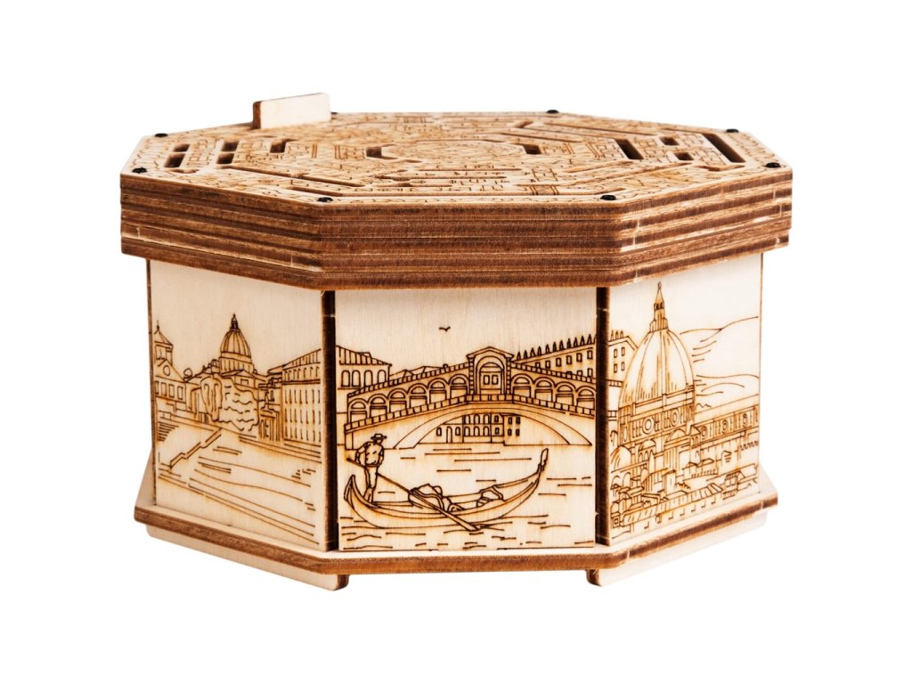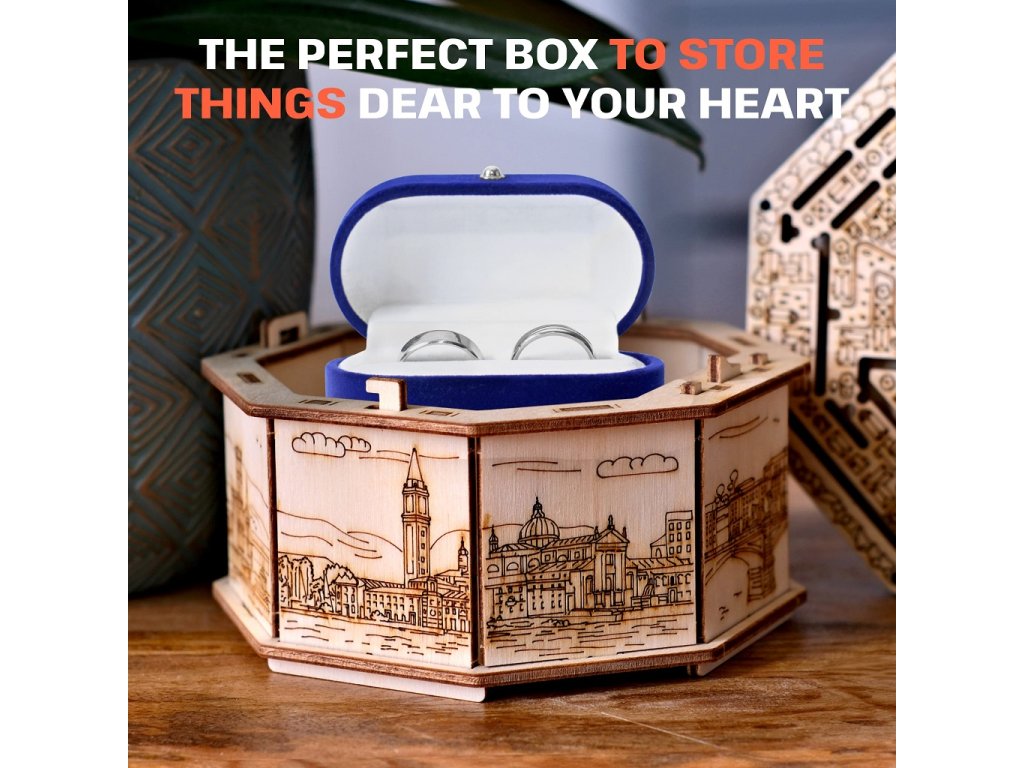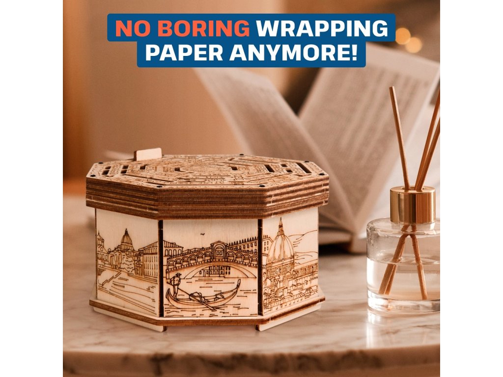 Odhalte mechanismus magického bludiště, abyste získali tajnou přihrádku. Věnujte dárek s překvapením, anebo skryjte svá tajemství díky tomuto vysoce kvalitnímu boxu s jedinečným designem. Secret Maze Box je dokonalý pro uložení věcí, které jsou vašemu srdci drahé. Elegantní tvar jej proměňuje v umělecké dílo, které bude ozdobou každého interiéru. Vyroben byl šetrně k životnímu prostředí, ze 100% přírodních materiálů a všechny jeho části byly přesně vyřezány nejlepší laserovou technologií. Splňuje všechny evropské bezpečnostní normy. Hlavní vlastnosti: vyrobeno ze 100% přírodních materiálůexkluzivní designprecizně vyřezano nejlepší laserovou technologiípoužitelné opakovaněvhodné jako kreativní dárek s překvapením