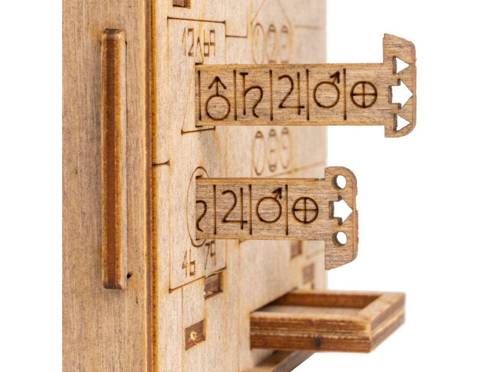 V roce 3143 vědci objevili další obyvatelnou planetu, X63Z. Na utajenou misi sbírat na planetě vzorky k dalšímu výzkumu byl vyslán zkušený astronaut Bubu. Na Zemi je již očekáván jeho návrat z náročné mise, když v tom je náhle zaznamenáno nouzové volání. Palivové články vesmírné lodi poškodil asteroid a hrozí jejich výbuch, posádka i cenný náklad jsou v bezprostředním ohrožení!Zapojte logické myšlení a pokuste se vysvobodit z vesmírného plavidla astronauta i nasbírané vzorky. Nejmodernější technologie zabezpečení lodi z celého úkolu dělají nelehkou misi. Podaří se Vám je včas zachránit?∗★∗Zakuste atmosféru únikových her s originálními scénáři a hádankami u Vás doma! Každý hlavolam ukrývá malou přihrádku, kterou můžete kreativně využít k úschově vodítka ve vlastní dobrodružné hře, nebo zpestření zážitku z drobného dárku. Součástí každého balení je jednoduchý obrázkový návod, který obsahuje také QR kód vedoucí na stránku s nápovědou. Rébus má vždy jedno řešení, kvalitním provedením je ale předurčen k dalšímu použití, neváhejte jím proto dále obdarovat a vyzvat své přátele, nebo členy rodiny. Zážitek obdarovaného zde můžete ještě umocnit za použití Tajemné dárkové krabičky, kterou naleznete v naší nabídce. Hlavní vlastnosti: rozměry vnitřní přihrádky 5×5×6 cmvysoká obtížnost řešeníjednoduchá montážvyrobeno z březového dřevavyrobeno v EU
