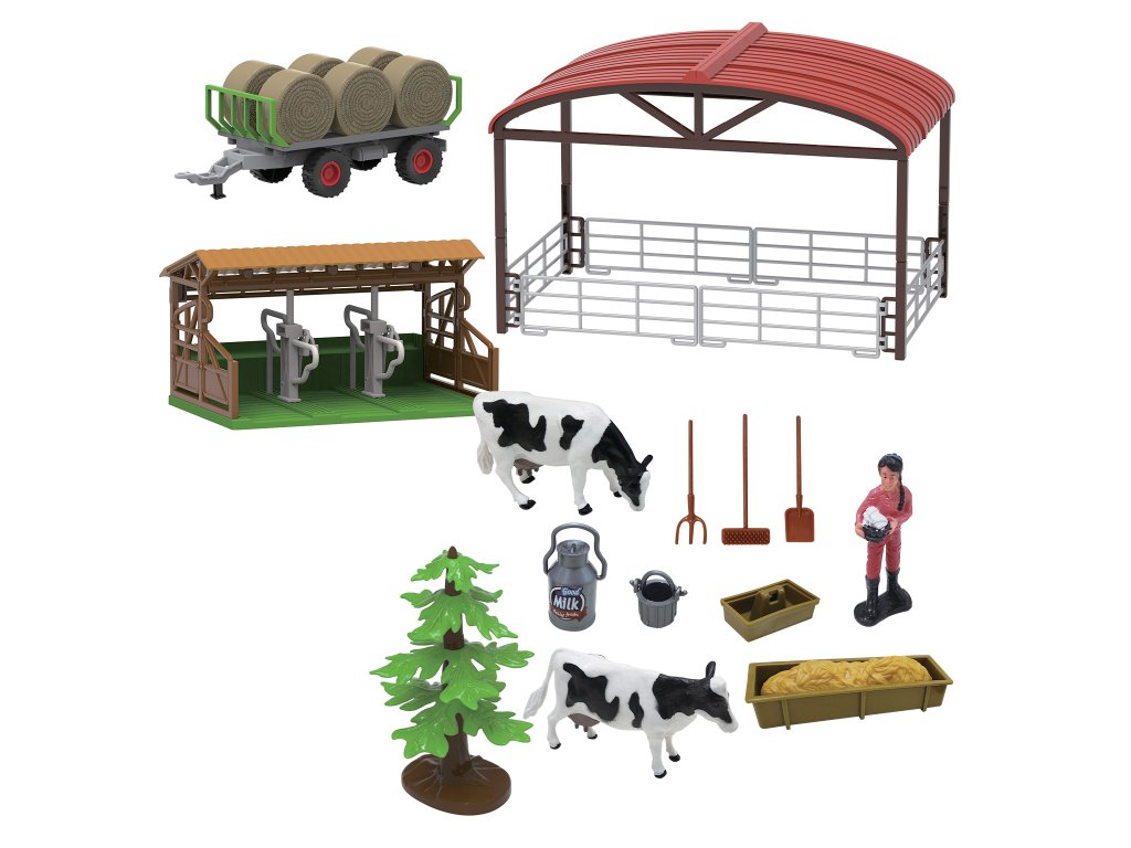 FARM SERVICE - Hrací set farma s traktorem a valníkem na seno 16 ks se světly a zvuky