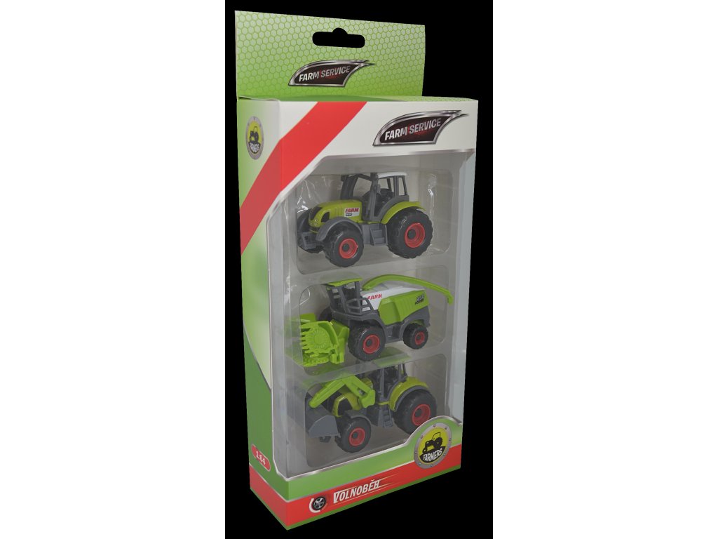 FARM SERVICE - Set zemědělských strojů: traktor, kombajn, traktor s čelním nakladačem 1:64