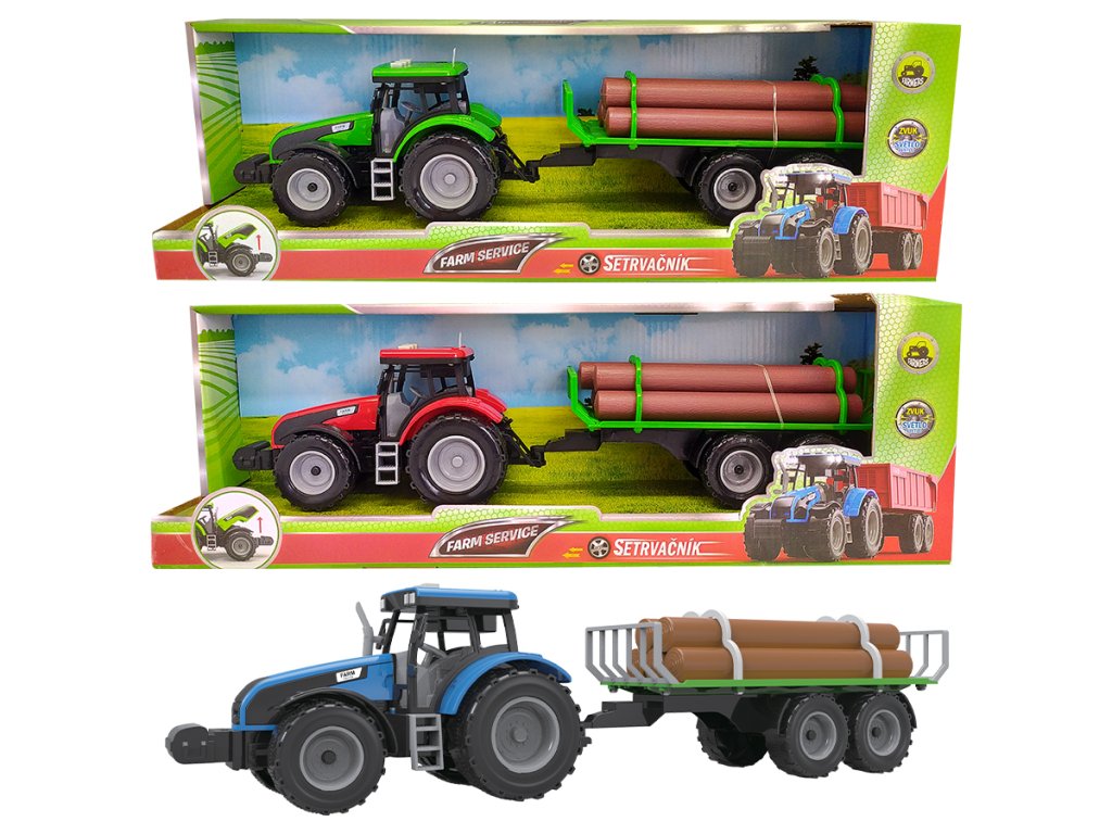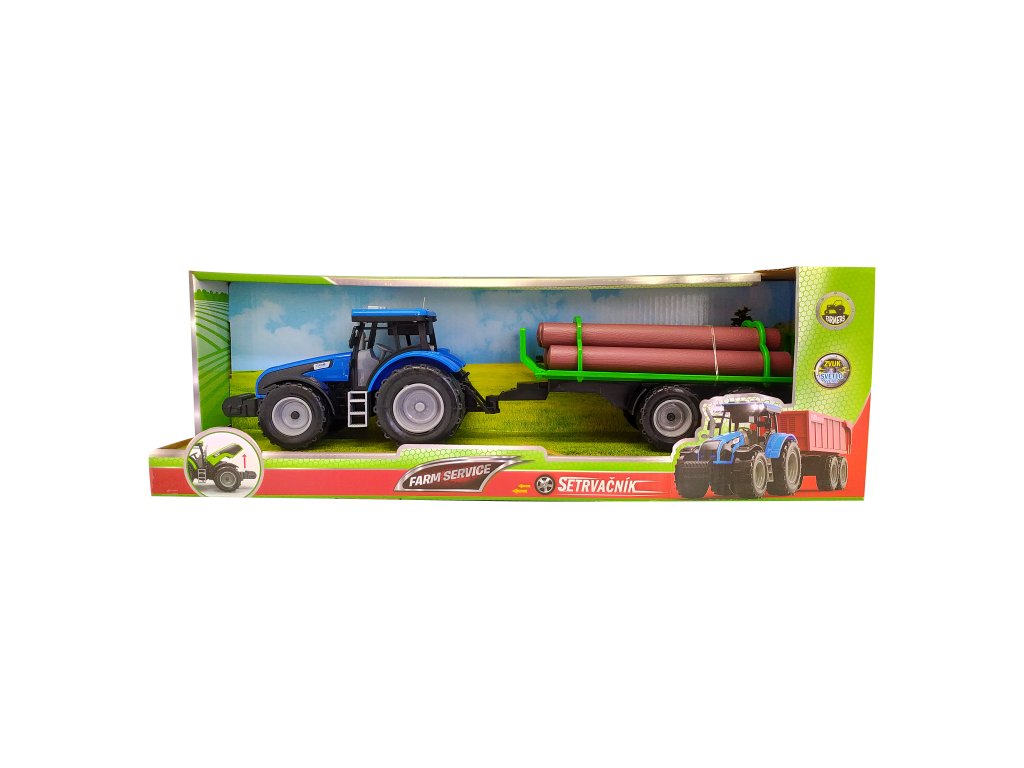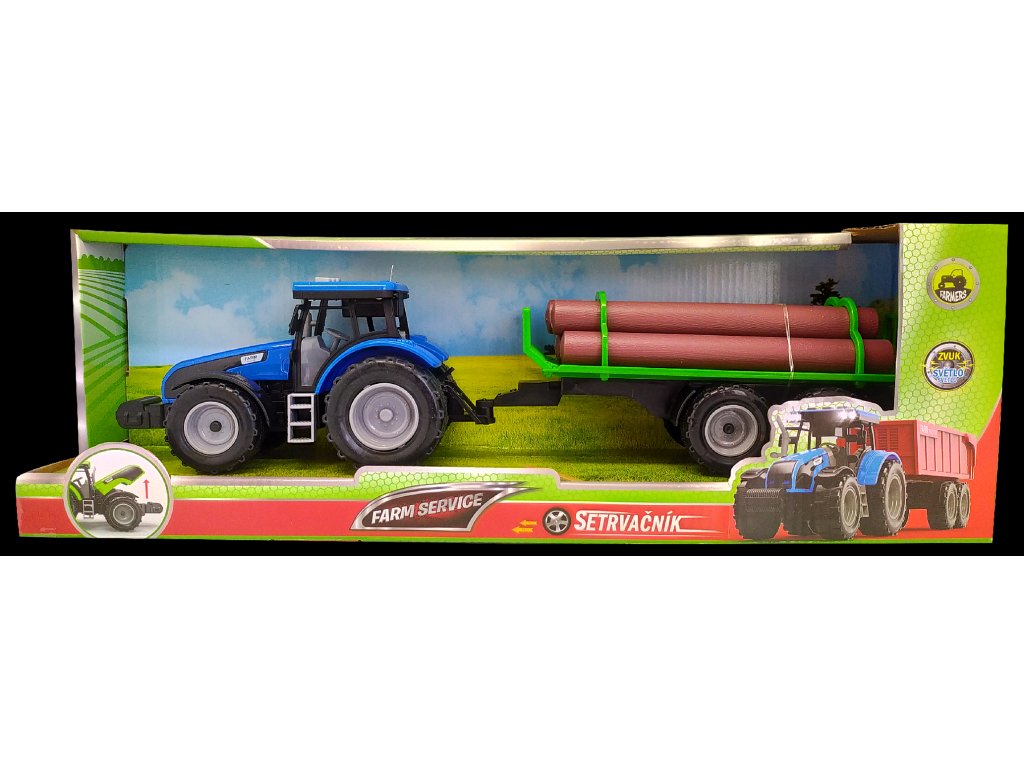 FARM SERVICE - Traktor s valníkem na dřevo se zvuky a světly