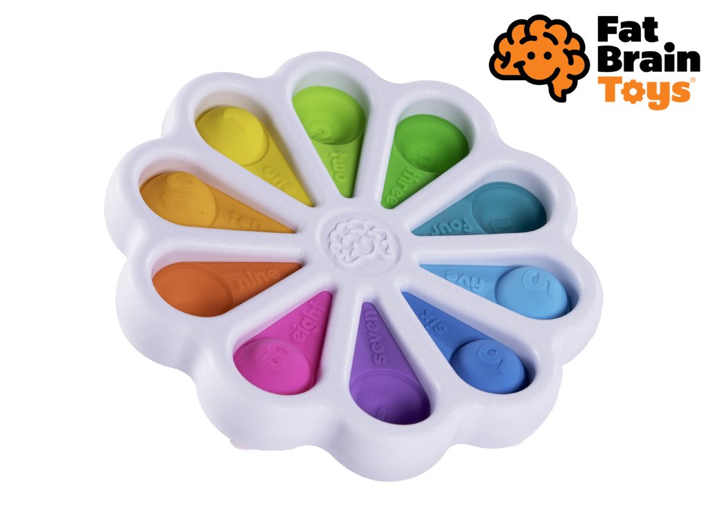 Dimpl digits - mačkací polštářky s čísly. Na horní straně číslice a číslo v anglickém jazyce, na spodní straně tečky v počtu odpovídajícím číslici. Vyrobeno z nezávadného silikonu.